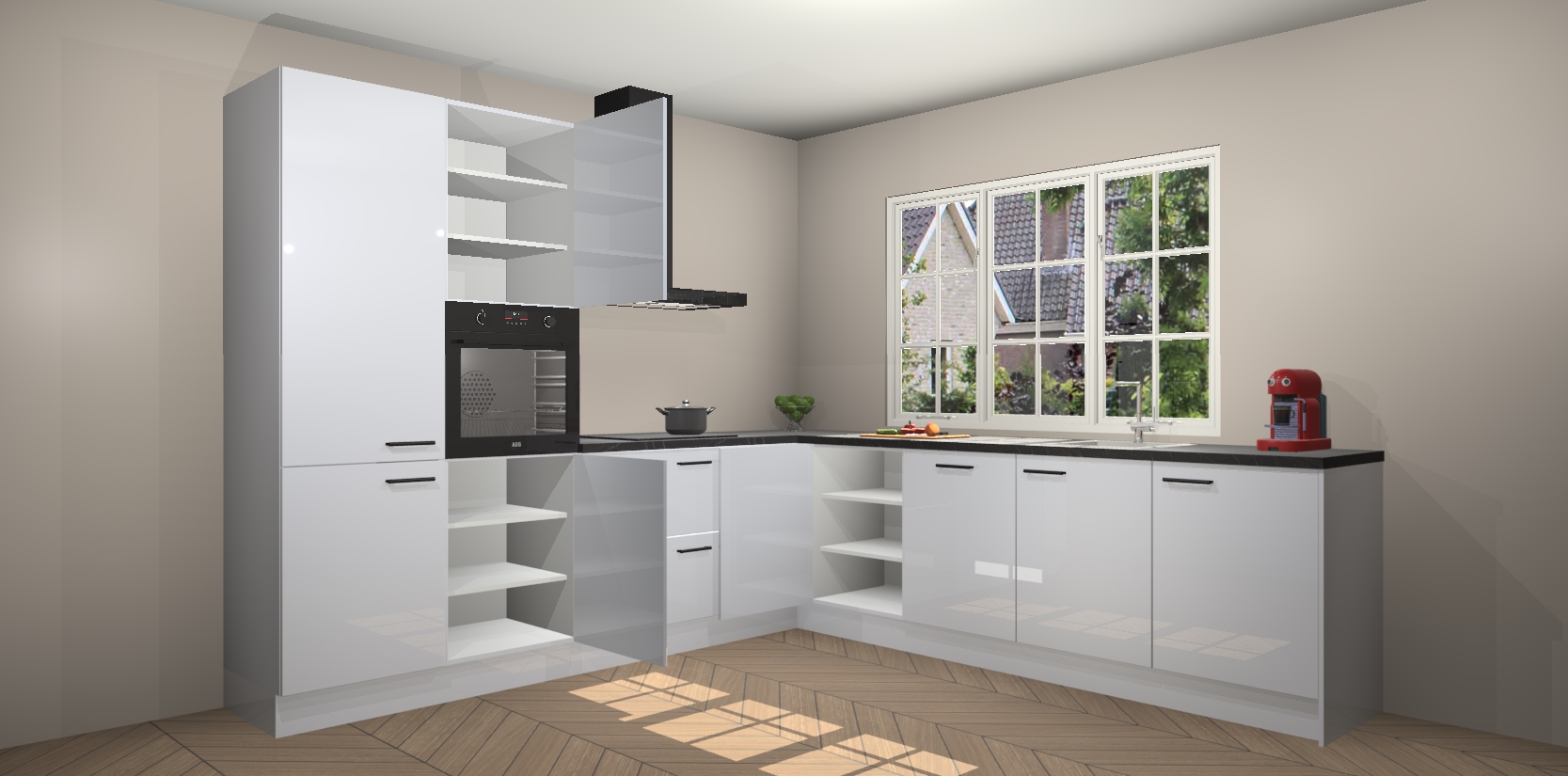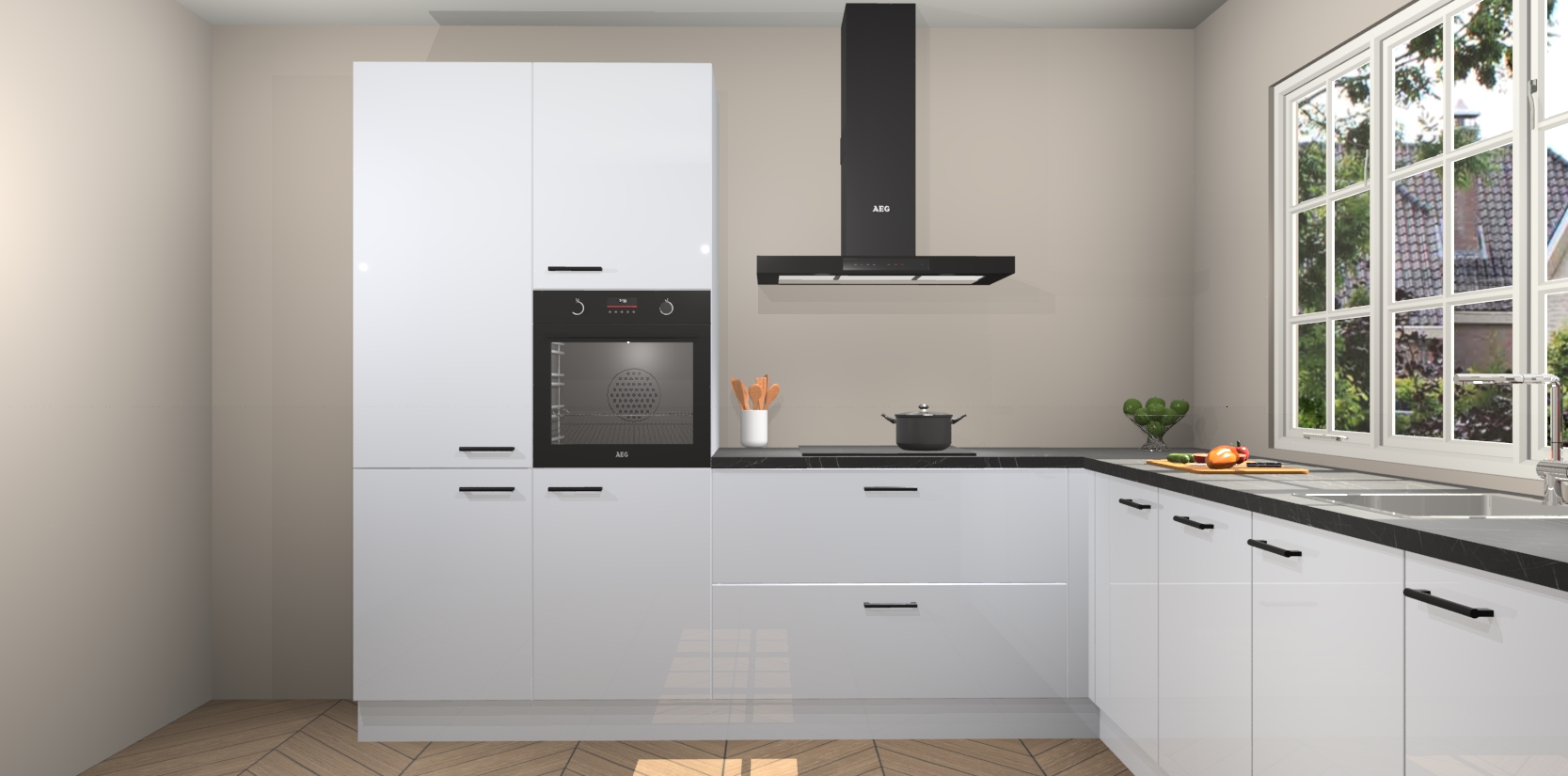 De keuken heeft veel opbergruimte, waardoor u alle ingrediënten gemakkelijk bereikbaar hebt staan. En daarnaast bevat deze volledig uitgeruste keuken ook 5 ingebouwde apparaten: een oven, inductiekookplaat, afzuigkap, vaatwasser en koelkast. Deze zijn heel eenvoudig na bestellen te upgraden naar AEG als u dit wilt. Bovendien zijn de softclose-kastdeuren ideaal; geef ze gewoon even een tikje en ze sluiten automatisch met geruisloze precisie.