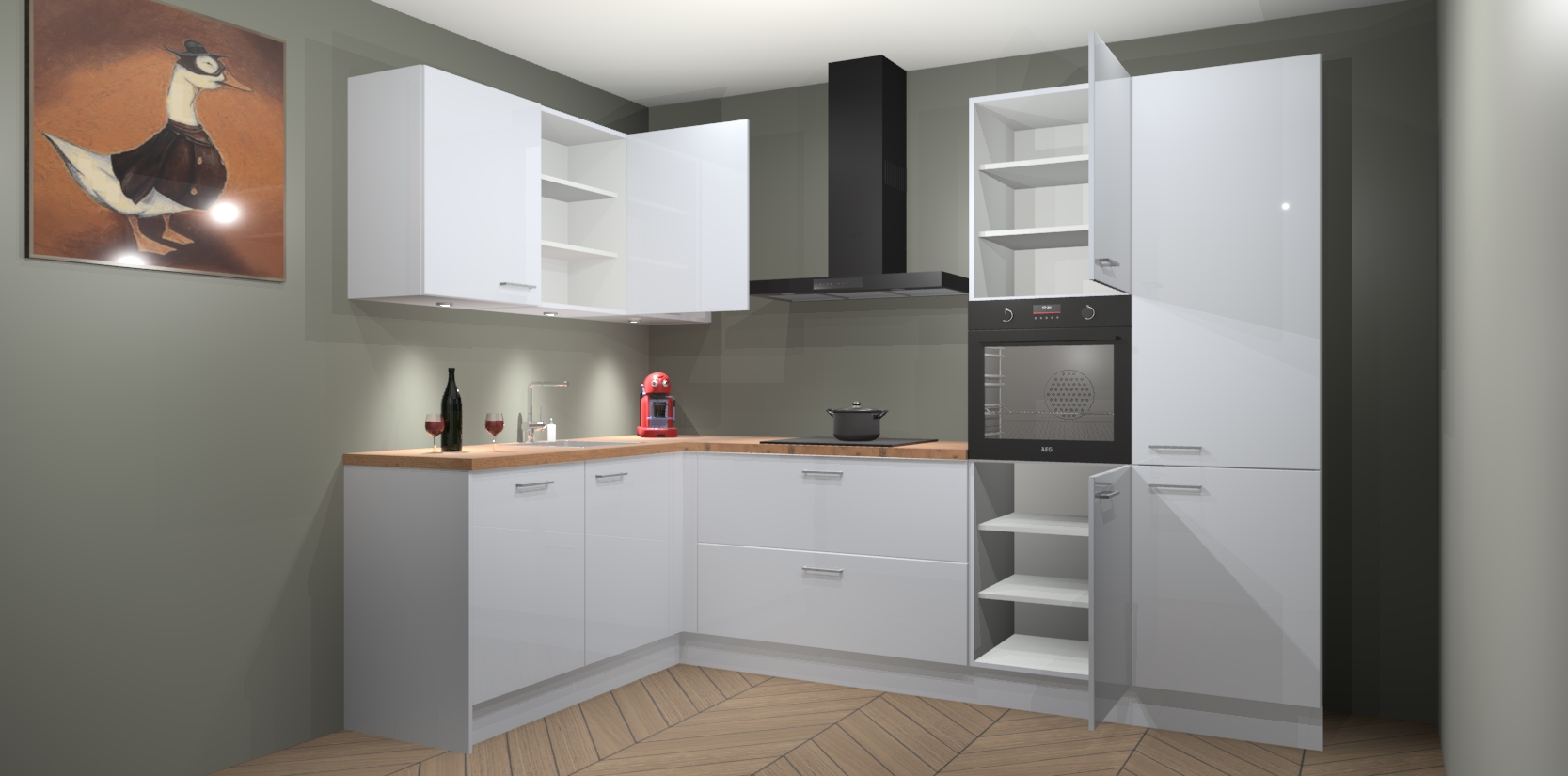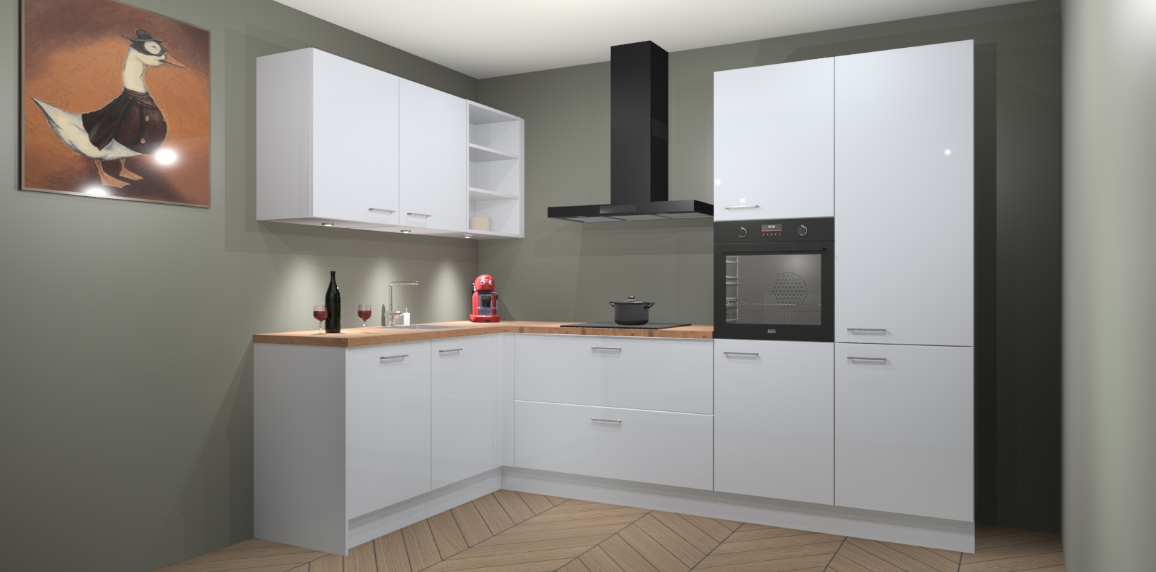 De Sneeuwwitte Hoogglans keuken Cognac is een adembenemend ontwerp met een modern en tijdloos uiterlijk. Deze luxe keuken straalt echt aristocratisch uit, waardoor uw koken plezieriger zal worden! Het prachtige design begint bij de hoekkeuken, wat perfect past bij elk type interieur. Bovendien bevat deze hoogwaardige set vijf inbouwapparaten - van oven tot koelkast - die via bestelling naar AEG geüpgraded kunnen worden!