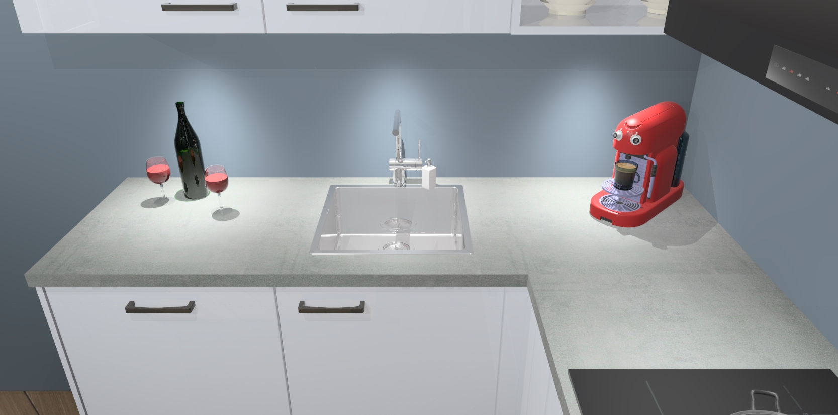 - Bij een hoekwerkblad zijn de hoeken in gevreesd en op maat gemaakt