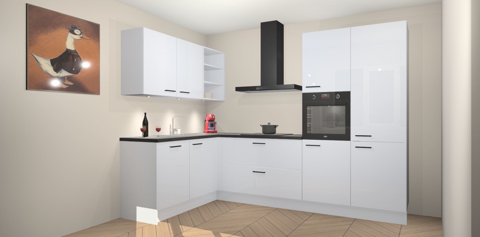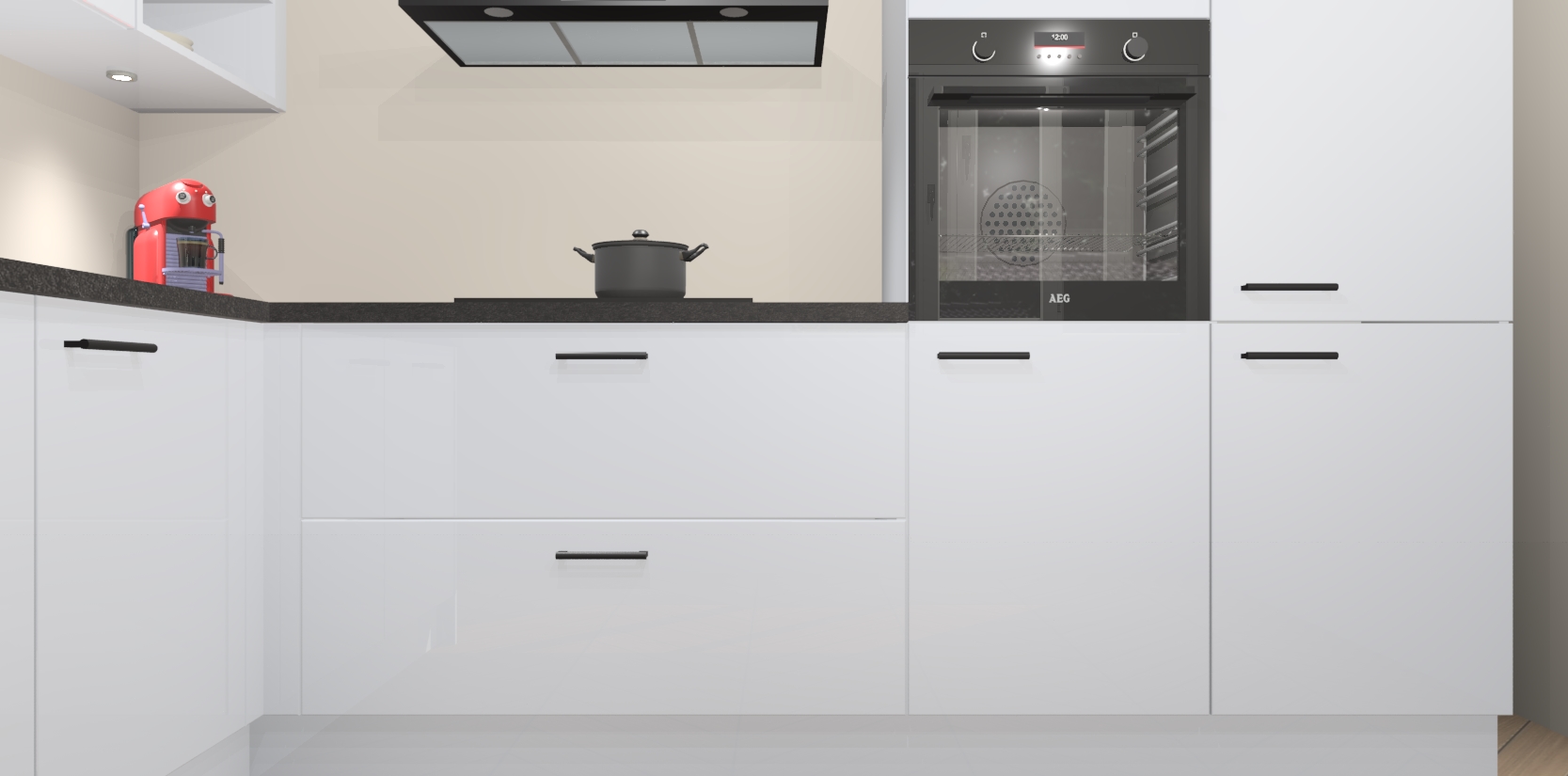 De Sneeuwwitte Hoogglans keuken Cognac is een adembenemend ontwerp met een modern en tijdloos uiterlijk. Deze luxe keuken straalt echt aristocratisch uit, waardoor uw koken plezieriger zal worden! Het prachtige design begint bij de hoekkeuken, wat perfect past bij elk type interieur. Bovendien bevat deze hoogwaardige set vijf inbouwapparaten - van oven tot koelkast - die via bestelling naar AEG geüpgraded kunnen worden!