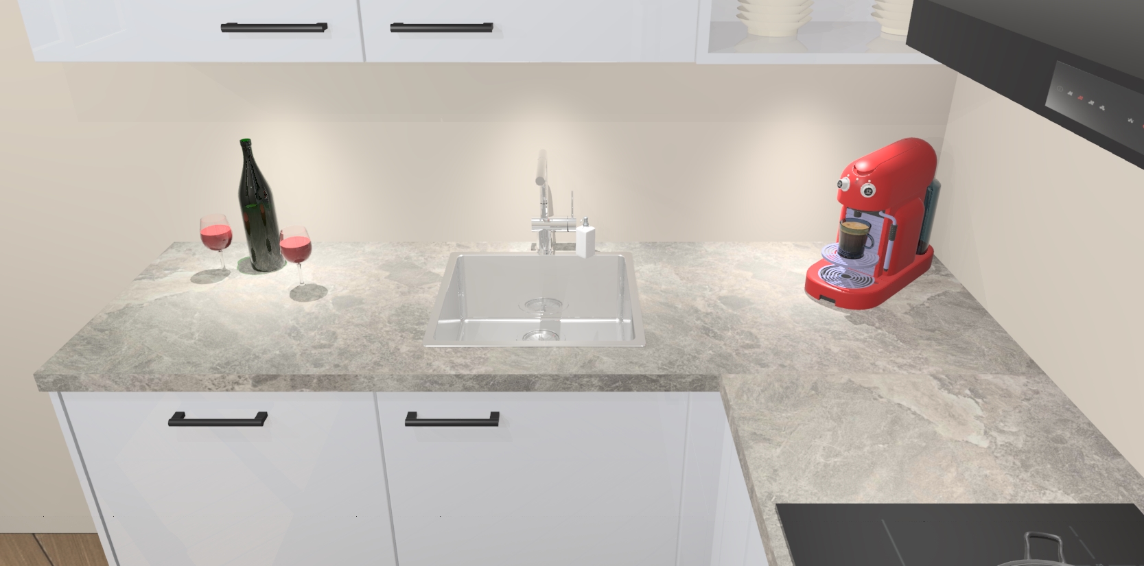 - Bij een hoekwerkblad zijn de hoeken in gevreesd en op maat gemaakt