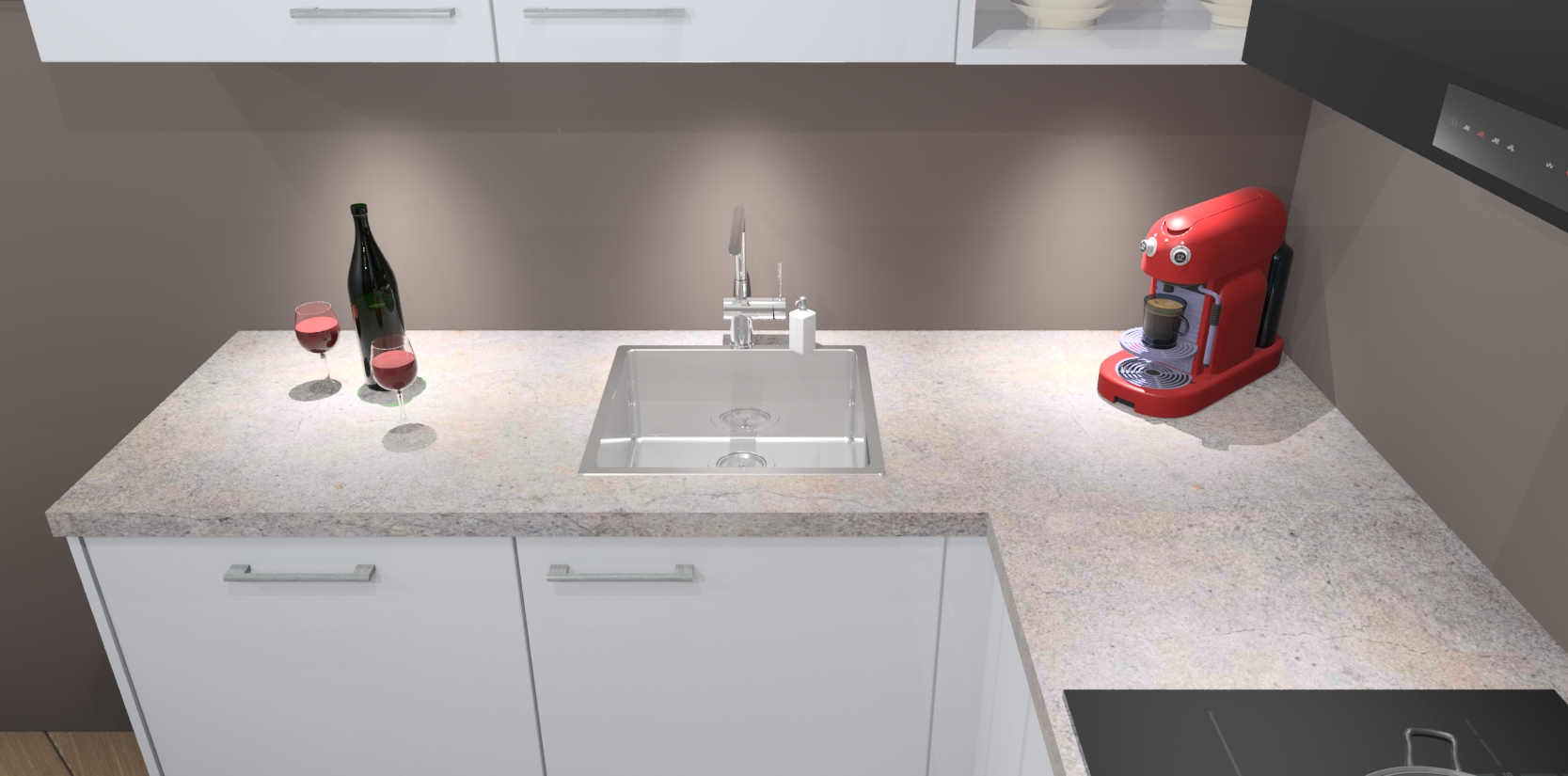 - Bij een hoekwerkblad zijn de hoeken in gevreesd en op maat gemaakt