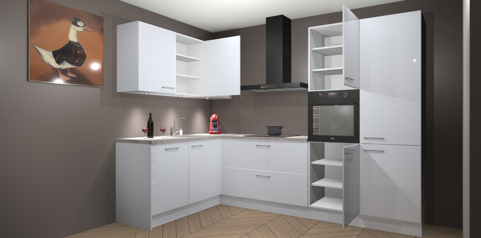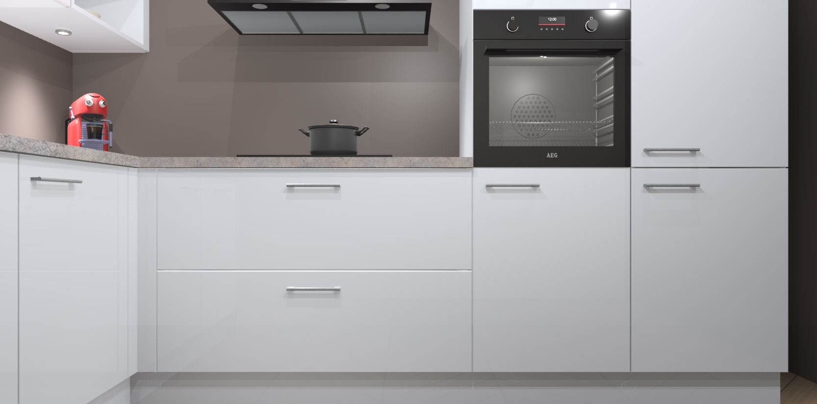 De Sneeuwwitte Hoogglans keuken Cognac is een adembenemend ontwerp met een modern en tijdloos uiterlijk. Deze luxe keuken straalt echt aristocratisch uit, waardoor uw koken plezieriger zal worden! Het prachtige design begint bij de hoekkeuken, wat perfect past bij elk type interieur. Bovendien bevat deze hoogwaardige set vijf inbouwapparaten - van oven tot koelkast - die via bestelling naar AEG geüpgraded kunnen worden!