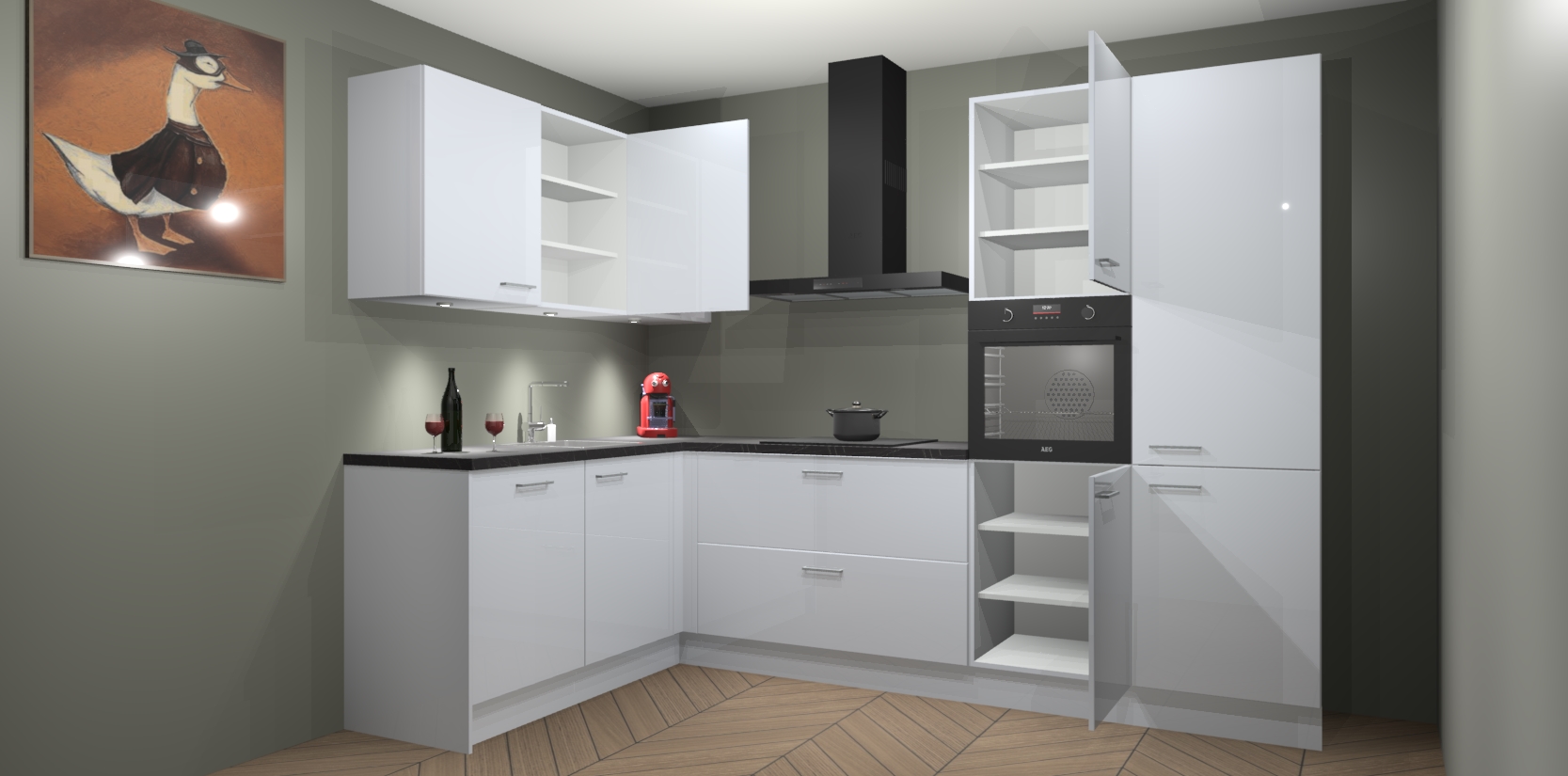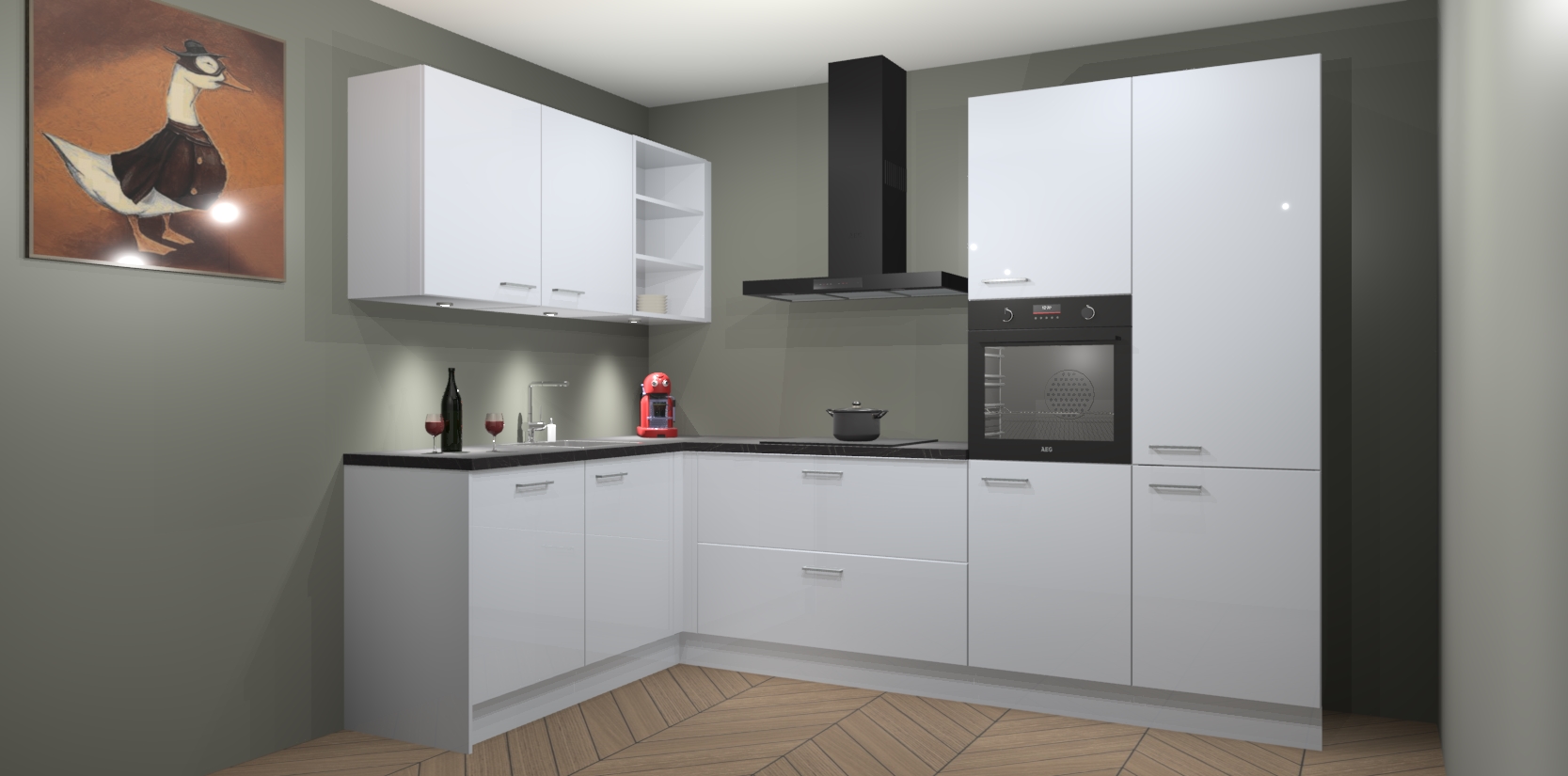 De Sneeuwwitte Hoogglans keuken Cognac is een adembenemend ontwerp met een modern en tijdloos uiterlijk. Deze luxe keuken straalt echt aristocratisch uit, waardoor uw koken plezieriger zal worden! Het prachtige design begint bij de hoekkeuken, wat perfect past bij elk type interieur. Bovendien bevat deze hoogwaardige set vijf inbouwapparaten - van oven tot koelkast - die via bestelling naar AEG geüpgraded kunnen worden!