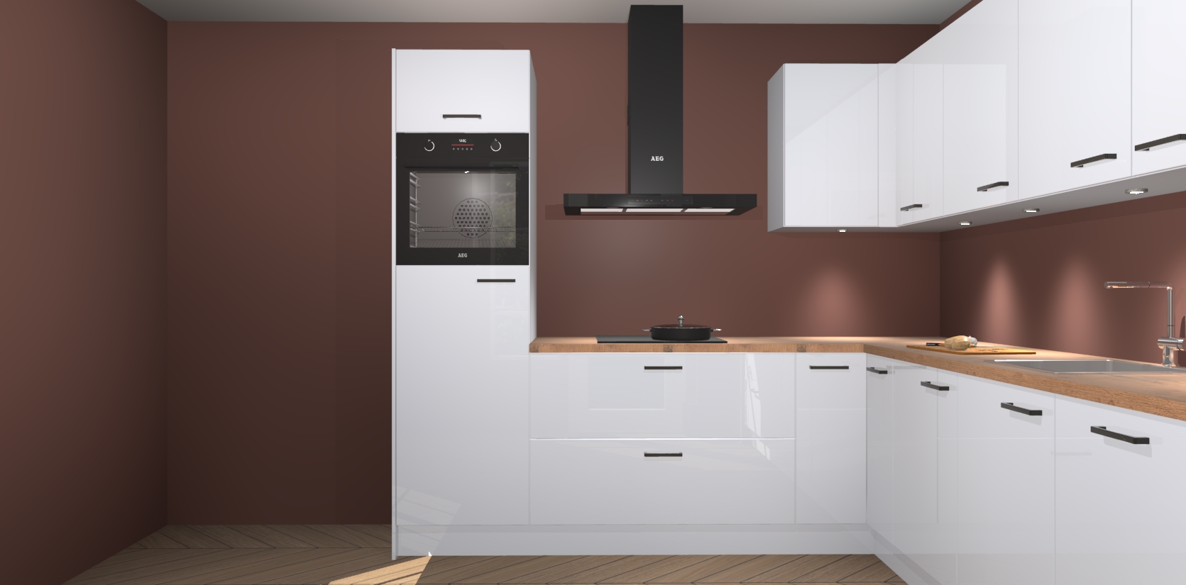 De Sneeuwwitte hoogglans keuken Debar is uitgerust met vijf inbouwapparaten die elke kooktaak handig en efficiënt maken. Een oven, inductiekookplaat, afzuigkap, vaatwasser en koelkast zijn standaard, maar kunnen na bestelling eenvoudig worden geupgrade naar AEG. Profiteer vervolgens van de softclose deuren voor snelle toegang en geruisloze toegang.