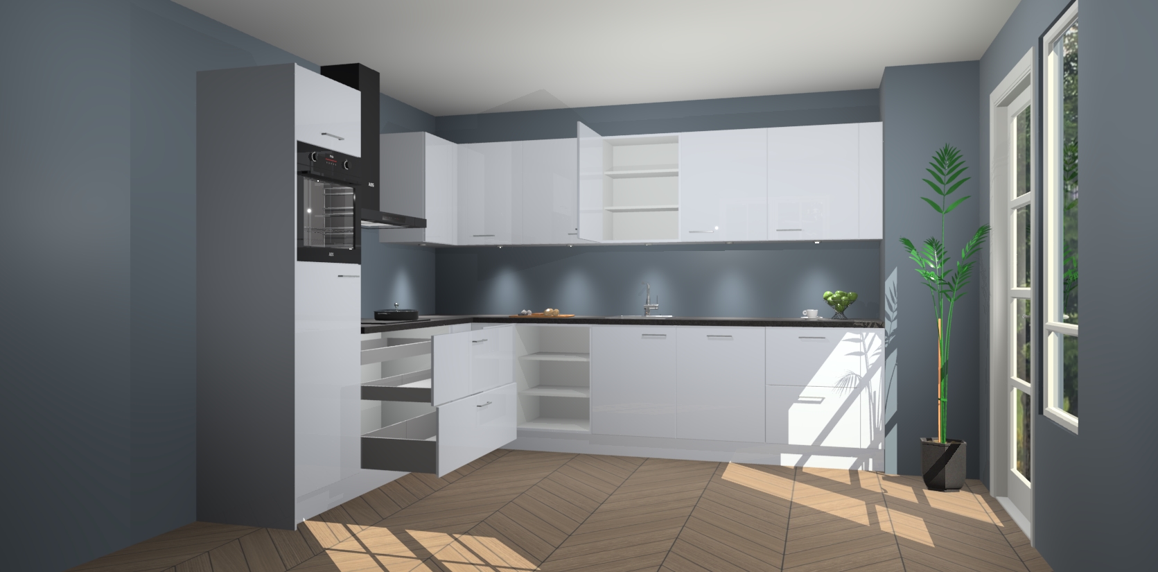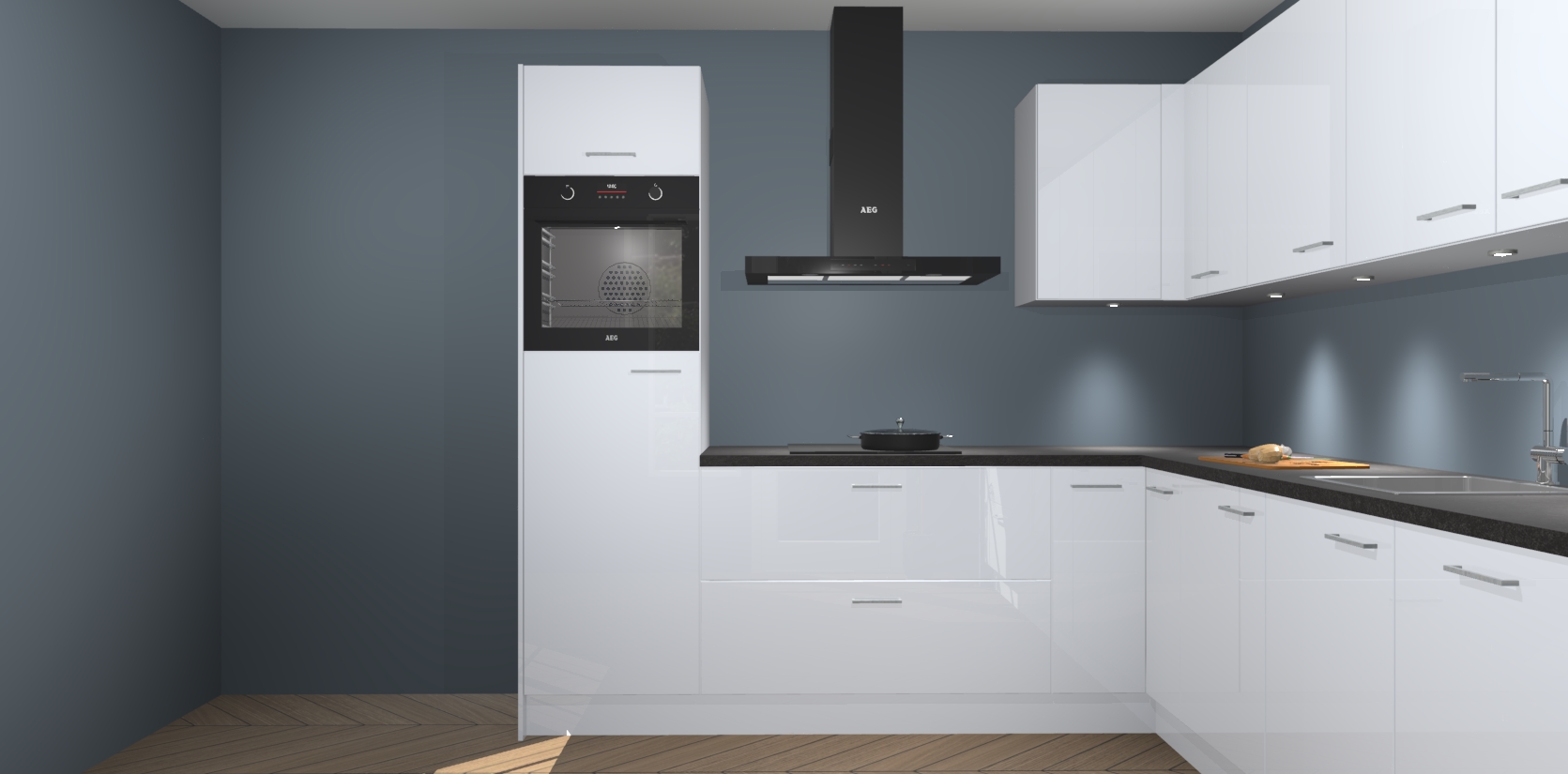 De Sneeuwwitte hoogglans keuken Debar is uitgerust met vijf inbouwapparaten die elke kooktaak handig en efficiënt maken. Een oven, inductiekookplaat, afzuigkap, vaatwasser en koelkast zijn standaard, maar kunnen na bestelling eenvoudig worden geupgrade naar AEG. Profiteer vervolgens van de softclose deuren voor snelle toegang en geruisloze toegang.