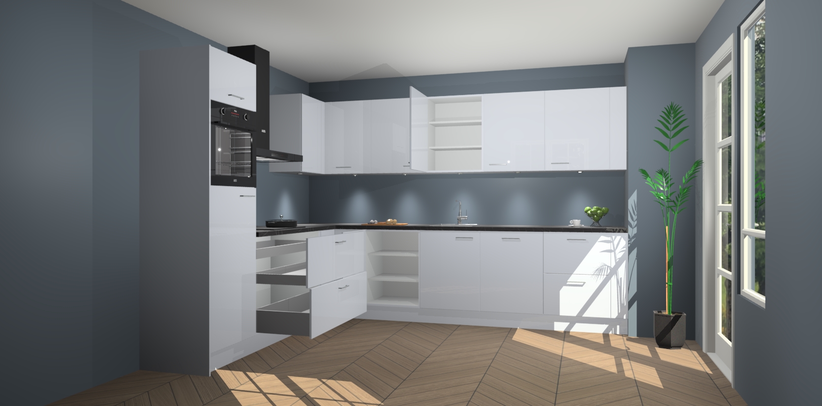 De Sneeuwwitte hoogglans keuken Debar is uitgerust met vijf inbouwapparaten die elke kooktaak handig en efficiënt maken. Een oven, inductiekookplaat, afzuigkap, vaatwasser en koelkast zijn standaard, maar kunnen na bestelling eenvoudig worden geupgrade naar AEG. Profiteer vervolgens van de softclose deuren voor snelle toegang en geruisloze toegang.