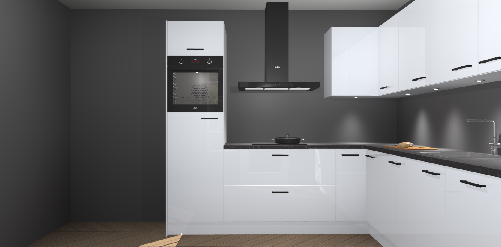 De Sneeuwwitte hoogglans keuken Debar is uitgerust met vijf inbouwapparaten die elke kooktaak handig en efficiënt maken. Een oven, inductiekookplaat, afzuigkap, vaatwasser en koelkast zijn standaard, maar kunnen na bestelling eenvoudig worden geupgrade naar AEG. Profiteer vervolgens van de softclose deuren voor snelle toegang en geruisloze toegang.