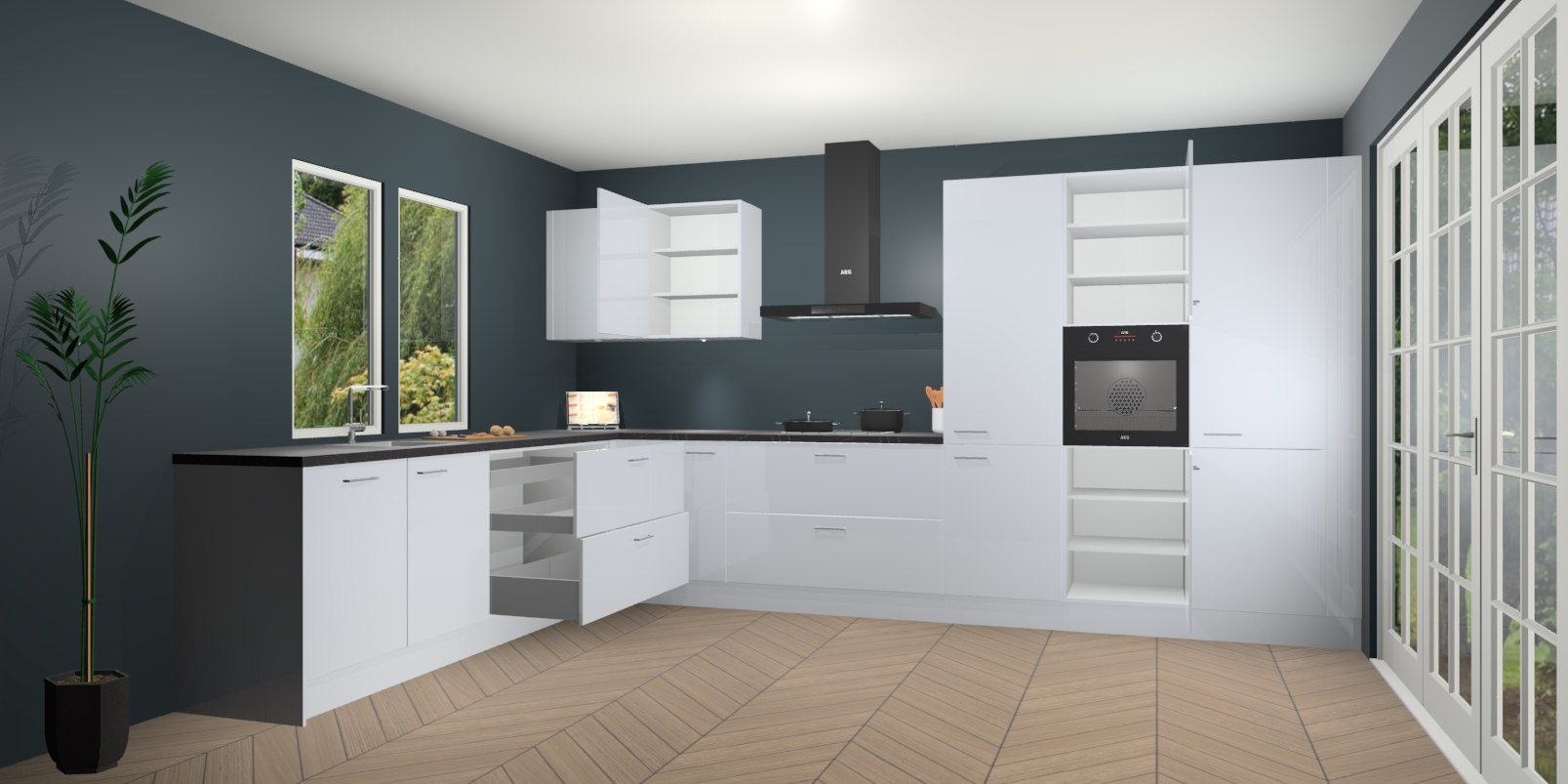 Kom dichtbij de perfecte keuken van uw dromen met de Sneeuwwitte hoogglans keuken Debrecen. Met een prachtige houtlook en eigentijds ontwerp, straalt deze keuken warmte en sfeer uit. Of u nu liefhebber bent van traditionele of moderne stijlen, er is genoeg ruimte om aan al uw behoeften te voldoen.