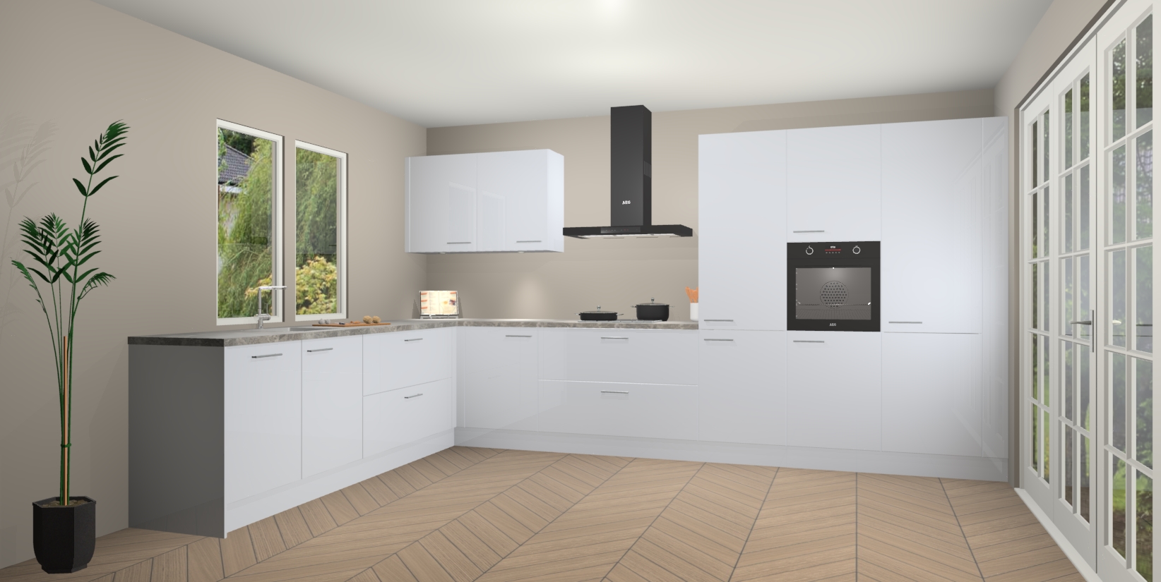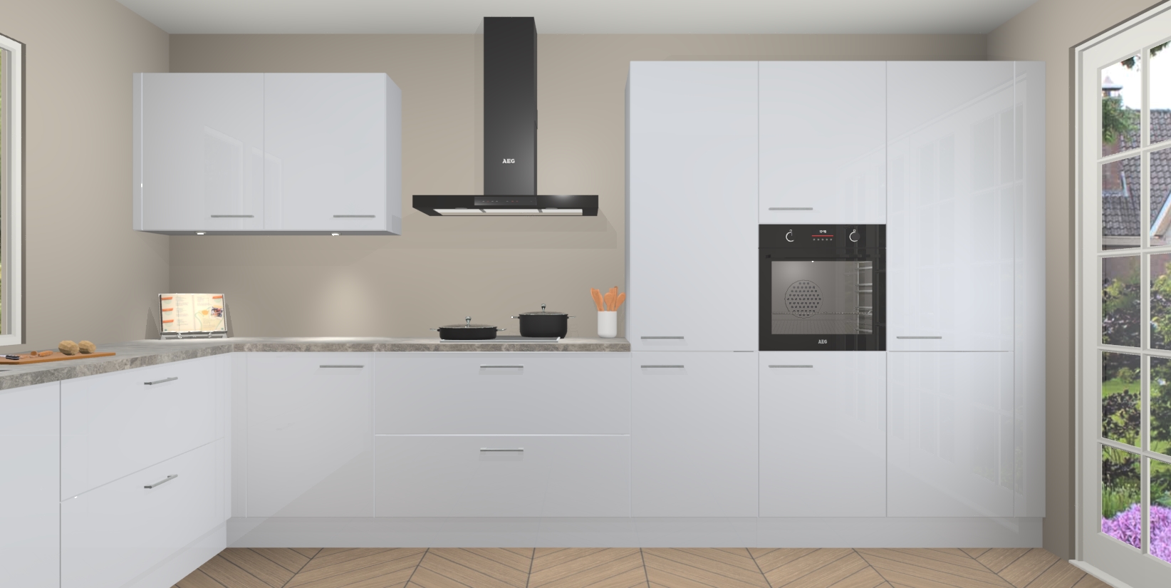 Heeft u nog apparatuur nodig? Geen probleem: de Sneeuwwitte hoogglans keuken Debrecen bevat vijf ingebouwde apparaten - een oven, inductiekookplaat, afzuigkap, vaatwasser en koelkast - die gemakkelijk kunnen worden bijgewerkt naar AEG na bestelling. En als dat nog niet genoeg is; onze kasten worden pre-geassembleerd geleverd en zijn verkrijgbaar tegen een vastgeroeste lage prijs! U hoeft nooit meer te zoeken naar goede kwaliteit en service want onze producten hebben echt Duitse kwaliteit.