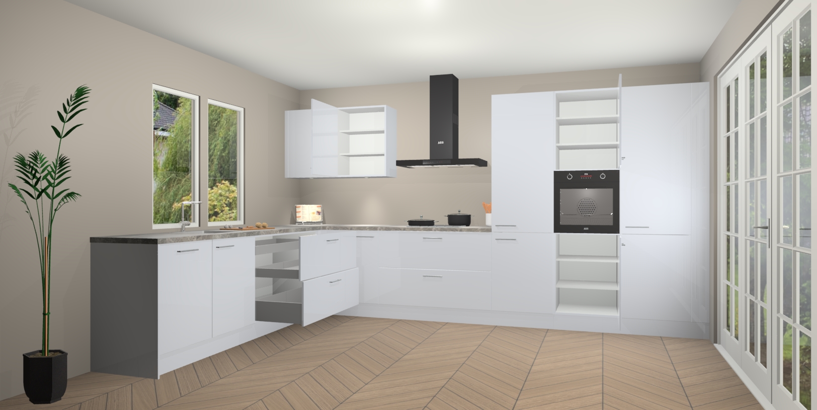 Inclusief plinten, stelpoten en werkblad