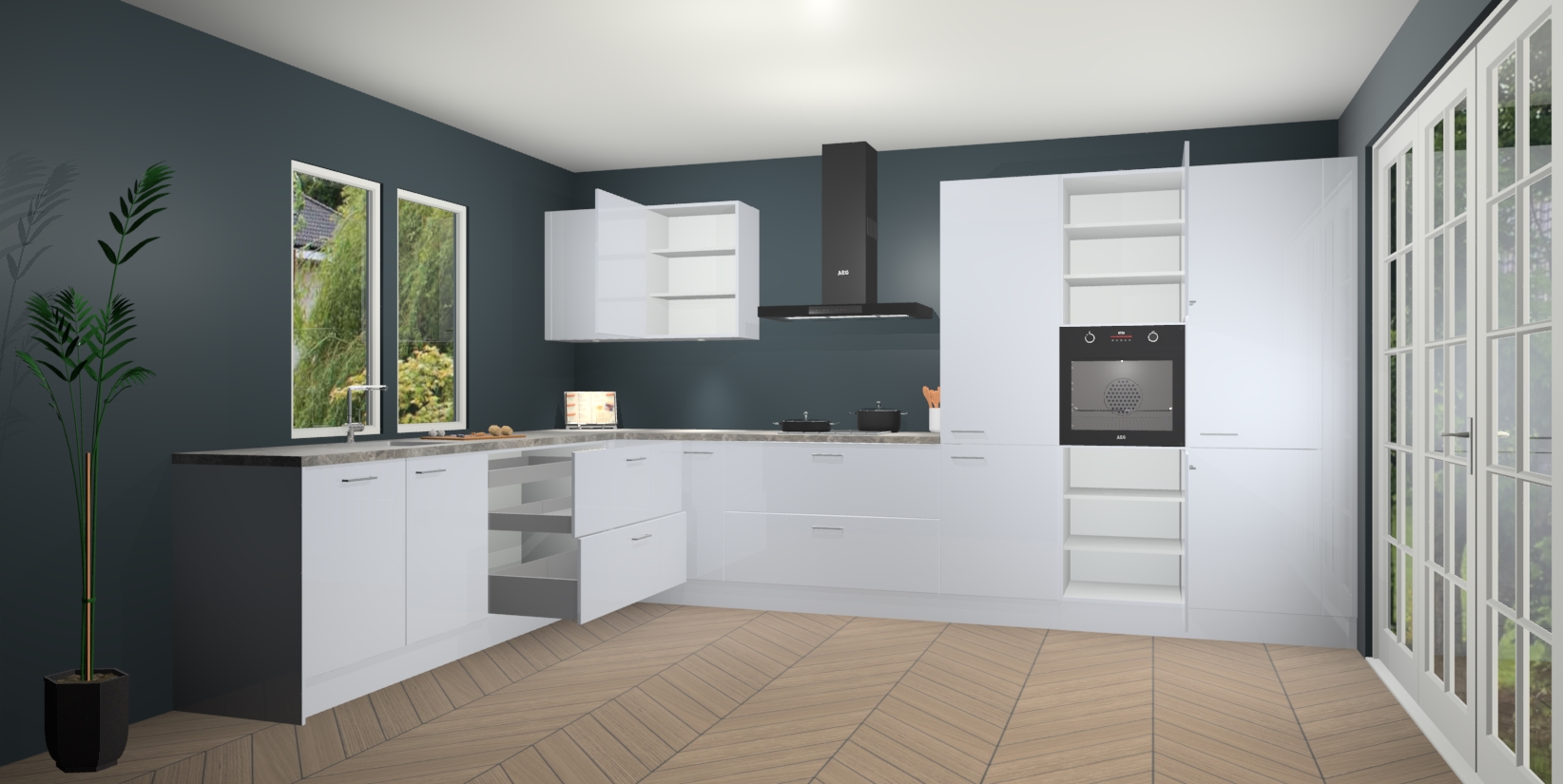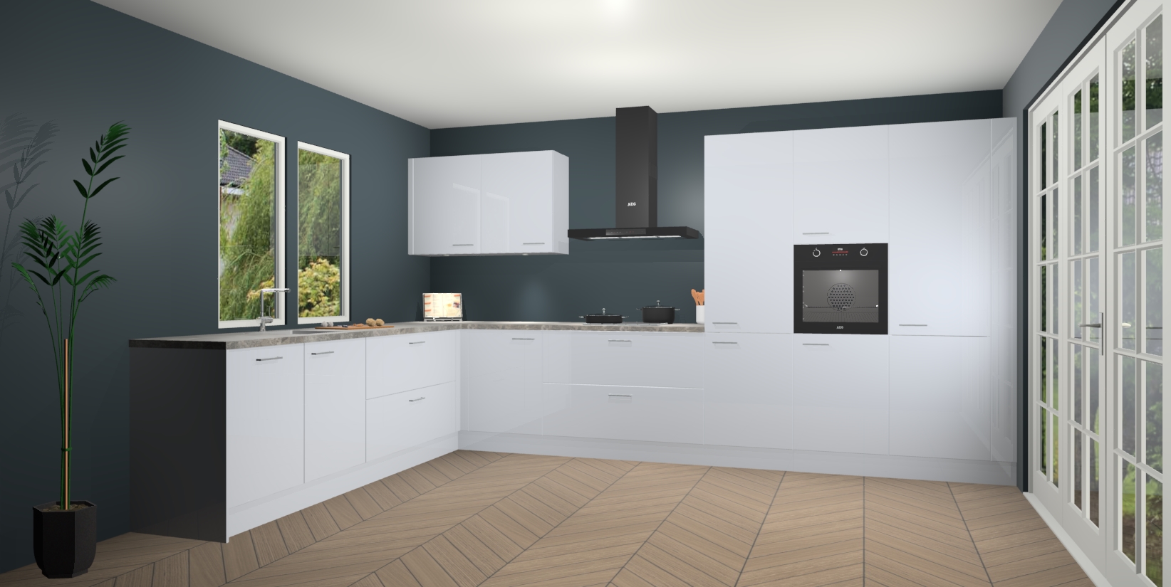 Inclusief plinten, stelpoten en werkblad