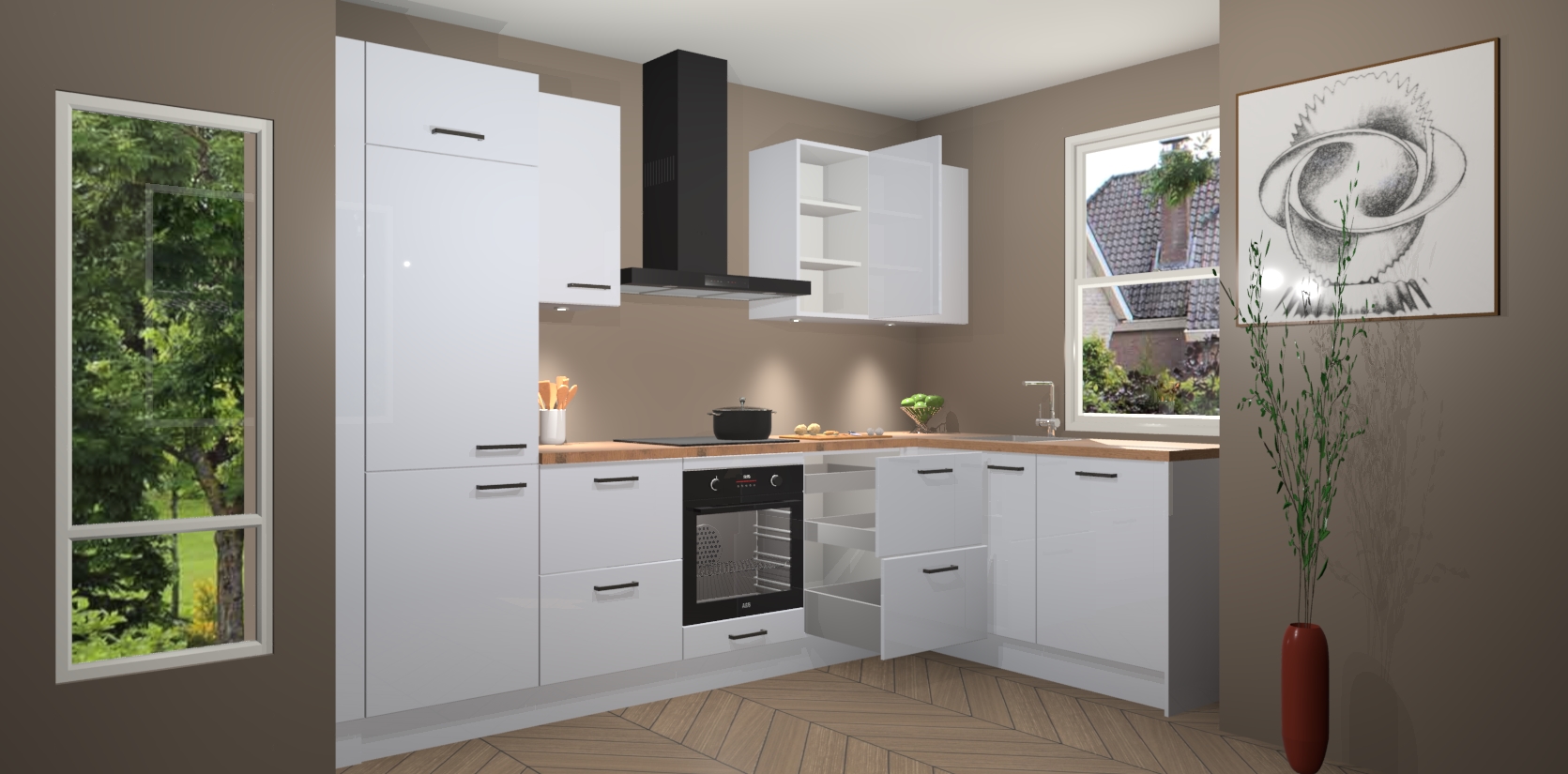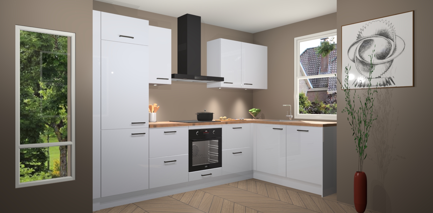 Bent u op zoek naar een moderne en tijdloze keuken die schoonheid in uw huis brengt? Zoek dan niet verder dan de Sneeuwwitte hoogglans keuken Geneve - de perfecte keuken voor al uw wensen. Deze hoekkeuken biedt de hoogste Duitse kwaliteit voor een vaste lage prijs en is zeker een blikvanger in uw huis!