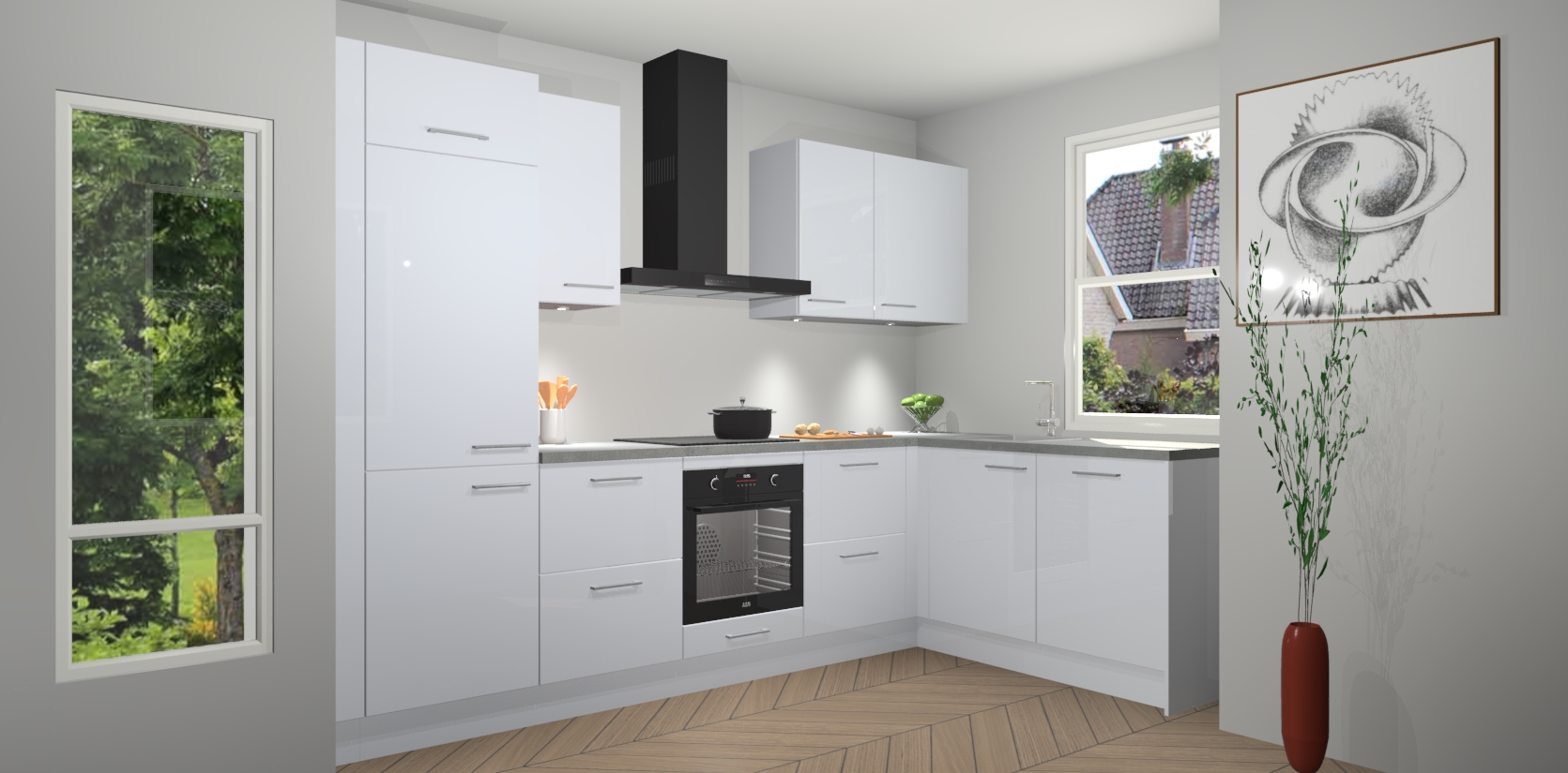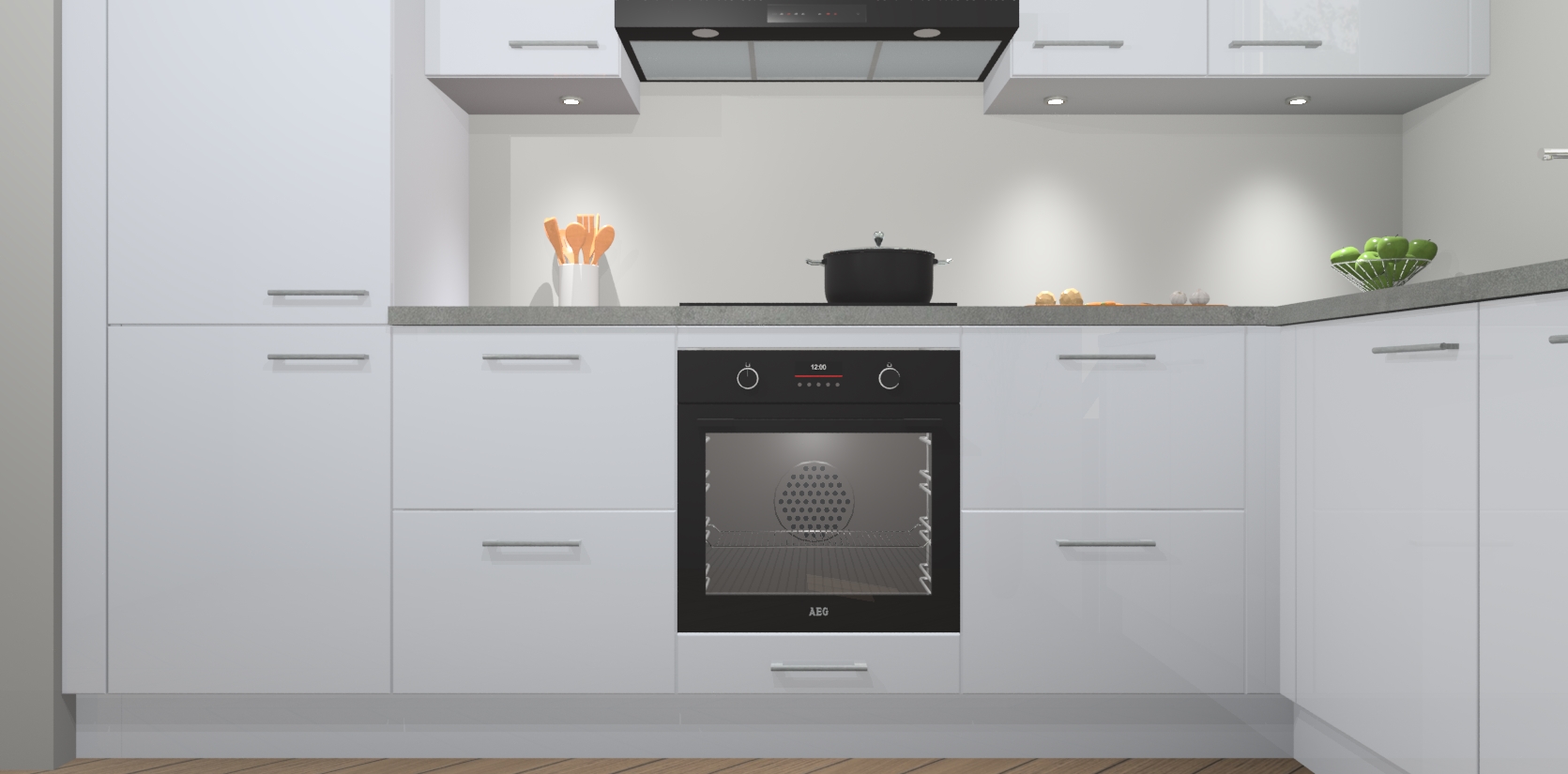 De Sneeuwwitte hoogglans keuken Geneve is uitgerust met 5 inbouwapparaten - een oven, inductiekookplaat, afzuigkap, vaatwasser en koelkast - voor al uw kook- en bewaarbehoeftes. U kunt deze apparaten desgewenst eenvoudig upgraden naar AEG of de oven omruilen voor een combimagnetron na het plaatsen van uw bestelling. En met de soft close deuren, voldoende opbergruimte en kasten die voorgemonteerd worden geleverd, bent u in een mum van tijd klaar om heerlijke maaltijden te bereiden!