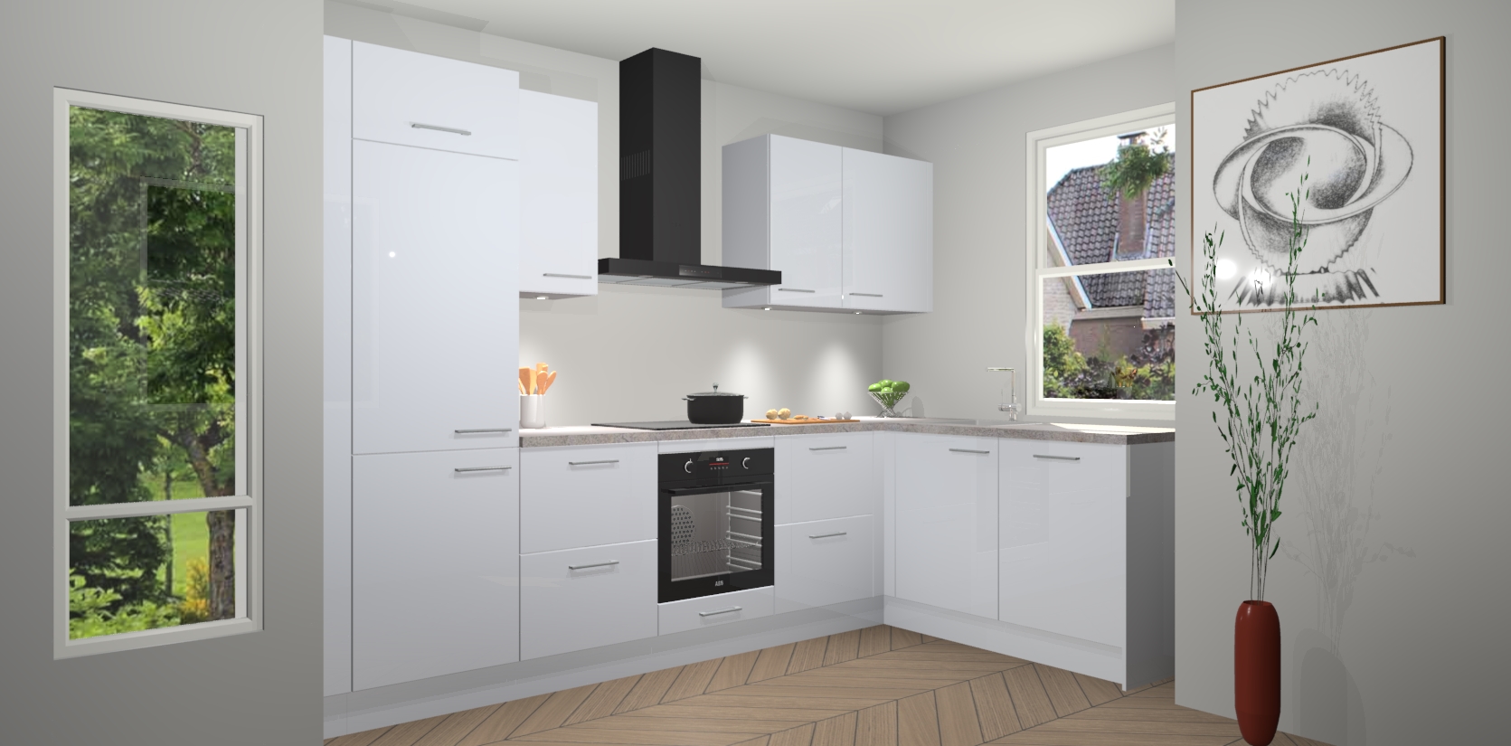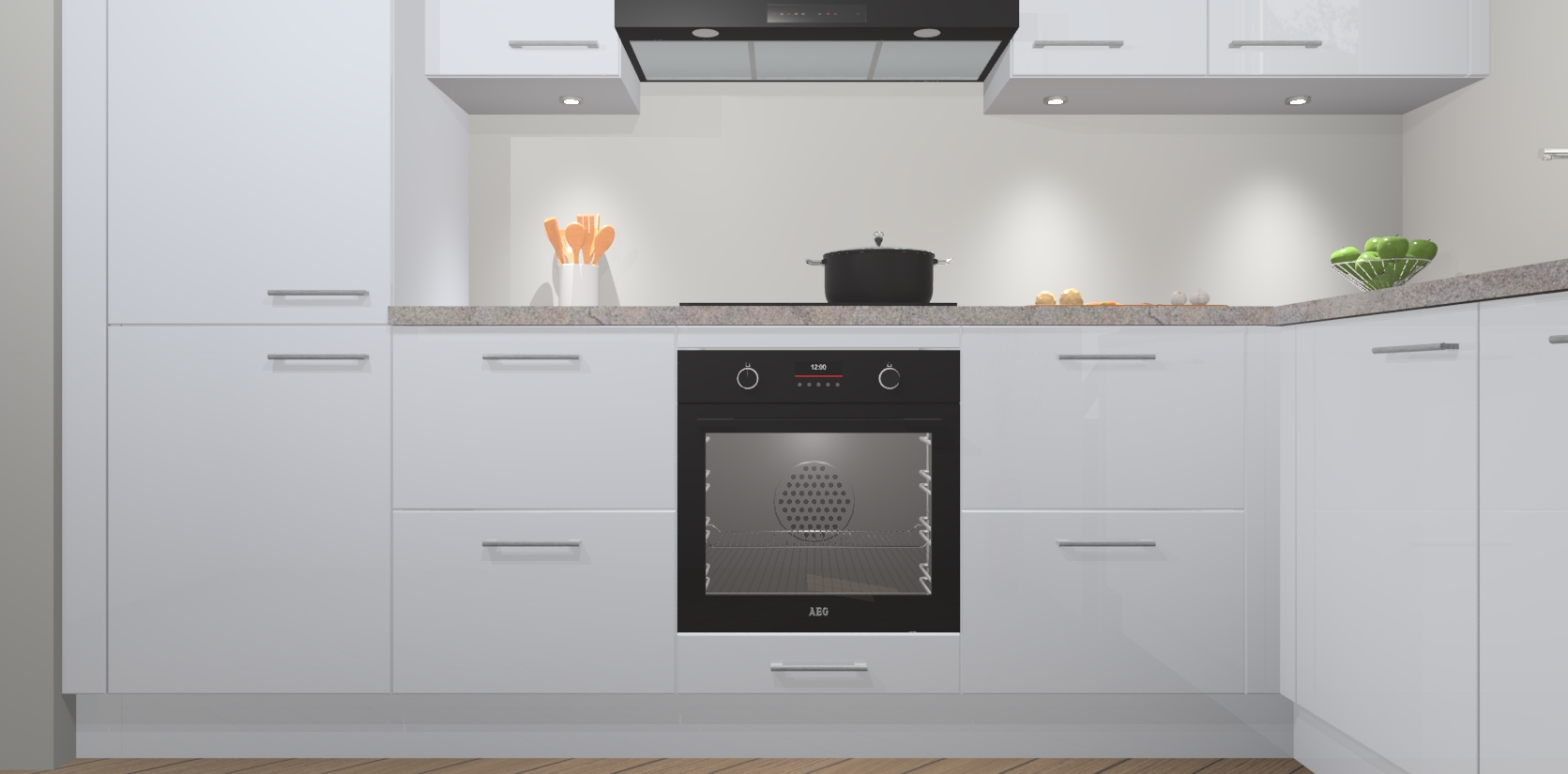 De Sneeuwwitte hoogglans keuken Geneve is uitgerust met 5 inbouwapparaten - een oven, inductiekookplaat, afzuigkap, vaatwasser en koelkast - voor al uw kook- en bewaarbehoeftes. U kunt deze apparaten desgewenst eenvoudig upgraden naar AEG of de oven omruilen voor een combimagnetron na het plaatsen van uw bestelling. En met de soft close deuren, voldoende opbergruimte en kasten die voorgemonteerd worden geleverd, bent u in een mum van tijd klaar om heerlijke maaltijden te bereiden!