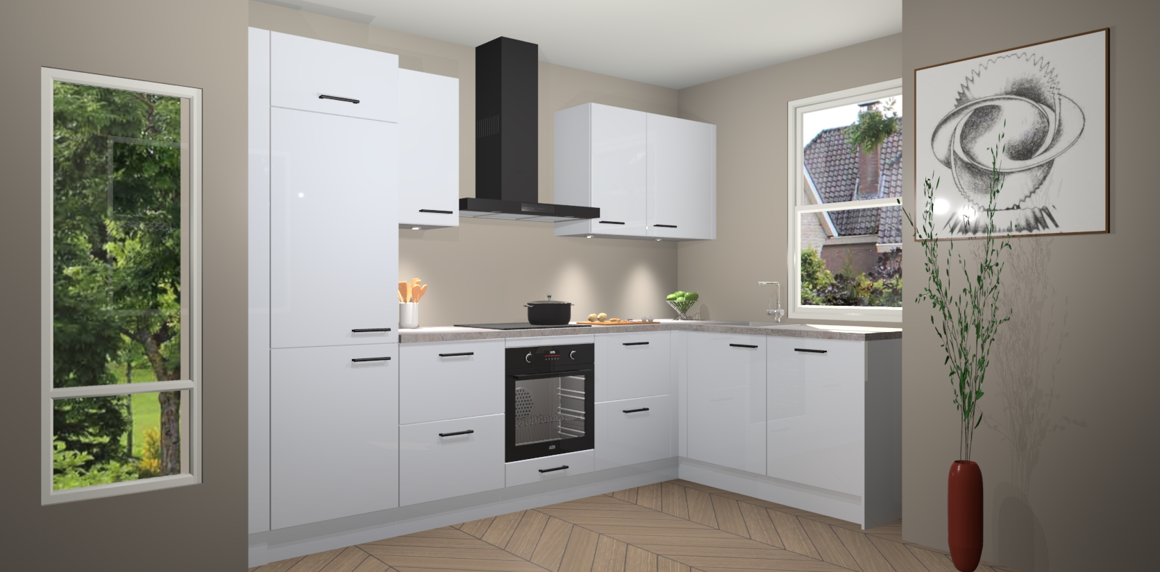 De Sneeuwwitte hoogglans keuken Geneve is uitgerust met 5 inbouwapparaten - een oven, inductiekookplaat, afzuigkap, vaatwasser en koelkast - voor al uw kook- en bewaarbehoeftes. U kunt deze apparaten desgewenst eenvoudig upgraden naar AEG of de oven omruilen voor een combimagnetron na het plaatsen van uw bestelling. En met de soft close deuren, voldoende opbergruimte en kasten die voorgemonteerd worden geleverd, bent u in een mum van tijd klaar om heerlijke maaltijden te bereiden!