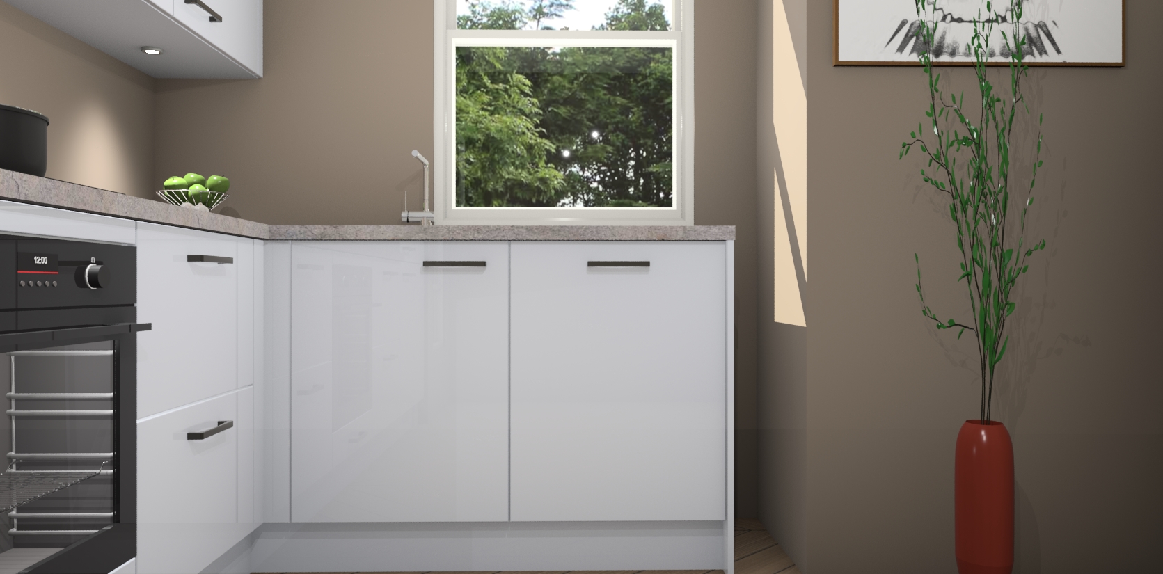 De Sneeuwwitte hoogglans keuken Geneve is uitgerust met 5 inbouwapparaten - een oven, inductiekookplaat, afzuigkap, vaatwasser en koelkast - voor al uw kook- en bewaarbehoeftes. U kunt deze apparaten desgewenst eenvoudig upgraden naar AEG of de oven omruilen voor een combimagnetron na het plaatsen van uw bestelling. En met de soft close deuren, voldoende opbergruimte en kasten die voorgemonteerd worden geleverd, bent u in een mum van tijd klaar om heerlijke maaltijden te bereiden!