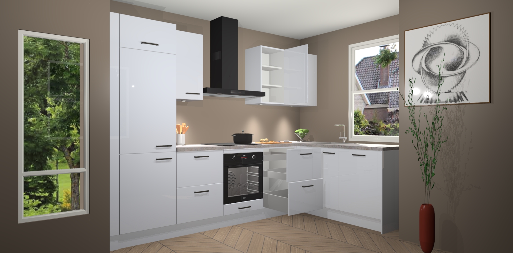 Bent u op zoek naar een moderne en tijdloze keuken die schoonheid in uw huis brengt? Zoek dan niet verder dan de Sneeuwwitte hoogglans keuken Geneve - de perfecte keuken voor al uw wensen. Deze hoekkeuken biedt de hoogste Duitse kwaliteit voor een vaste lage prijs en is zeker een blikvanger in uw huis!