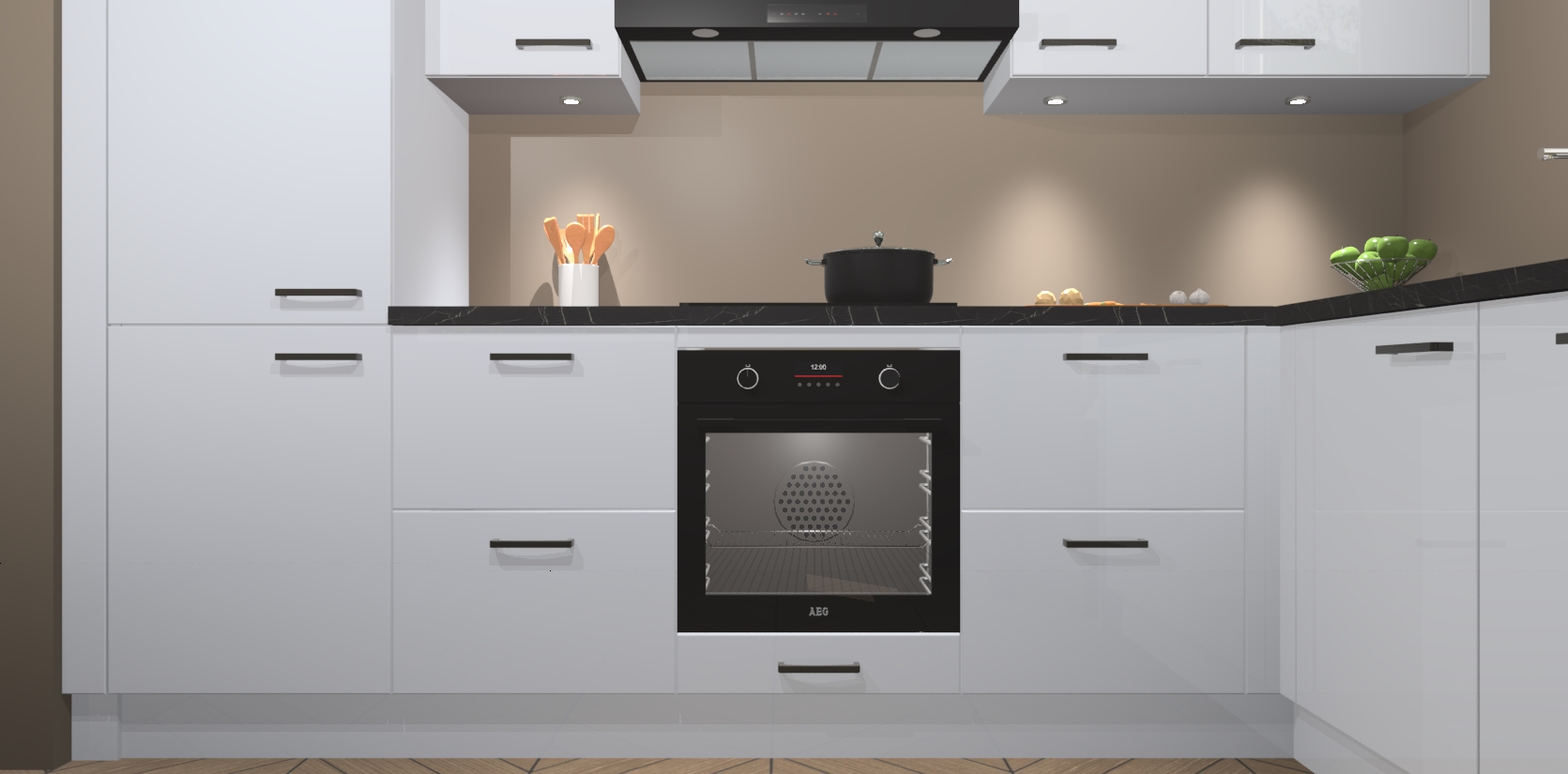 De Sneeuwwitte hoogglans keuken Geneve is uitgerust met 5 inbouwapparaten - een oven, inductiekookplaat, afzuigkap, vaatwasser en koelkast - voor al uw kook- en bewaarbehoeftes. U kunt deze apparaten desgewenst eenvoudig upgraden naar AEG of de oven omruilen voor een combimagnetron na het plaatsen van uw bestelling. En met de soft close deuren, voldoende opbergruimte en kasten die voorgemonteerd worden geleverd, bent u in een mum van tijd klaar om heerlijke maaltijden te bereiden!