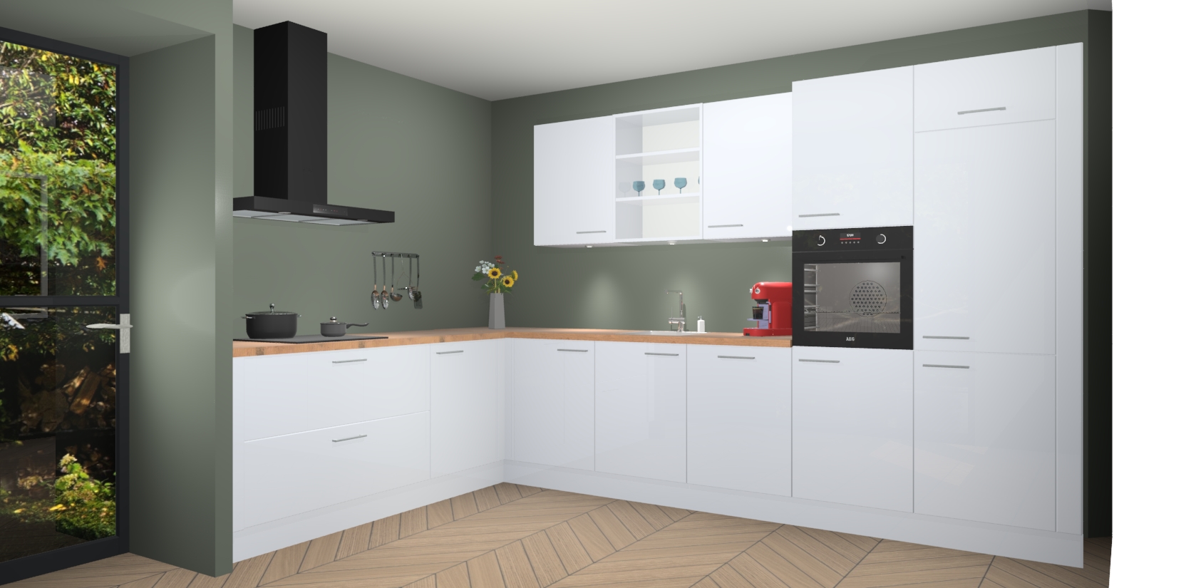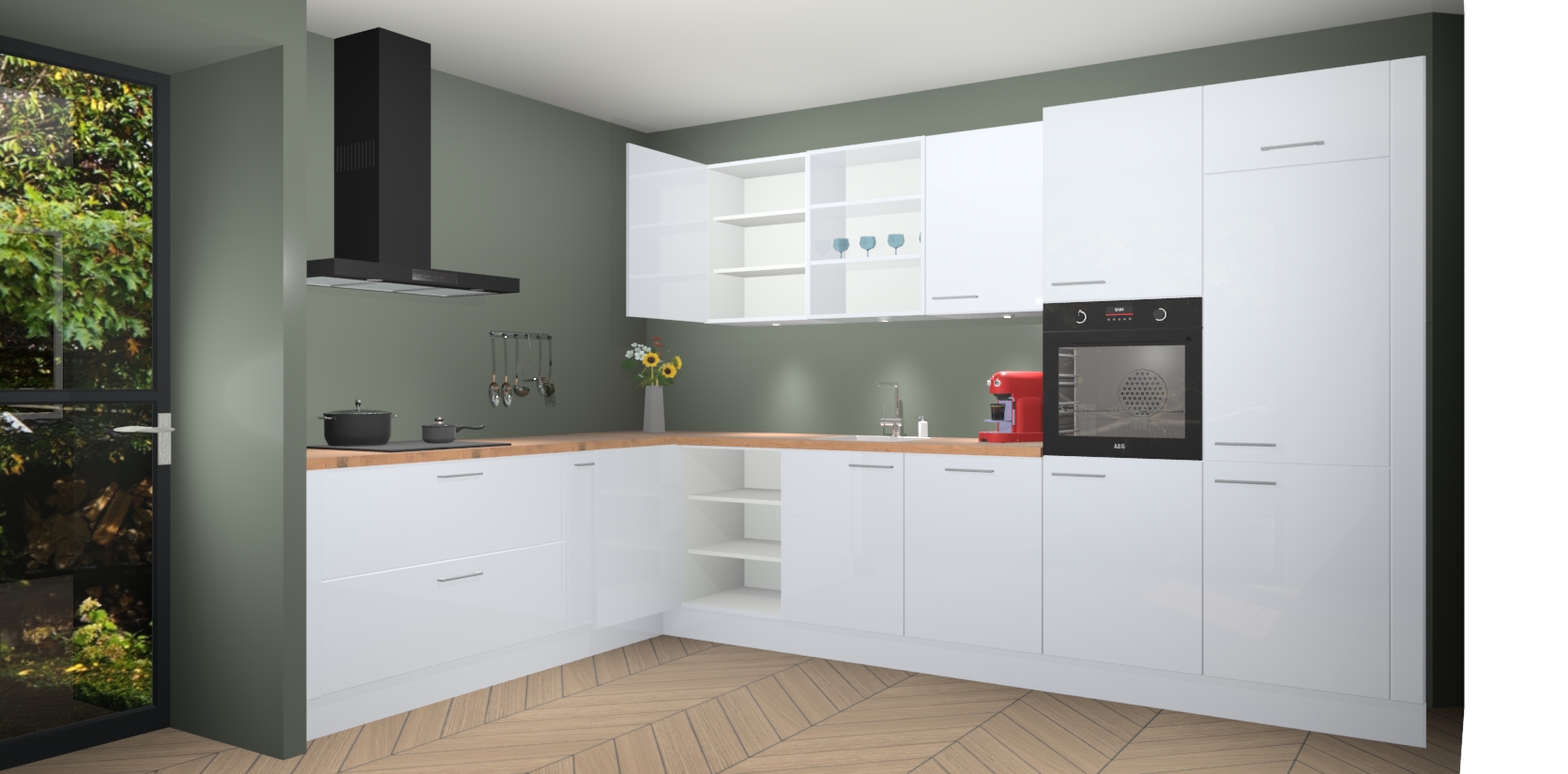 De Sneeuwwitte hoogglans keuken Gotenburg is zo ontworpen dat u alle mogelijke vormen van opslagruimte kunt genieten. Bovendien heeft u meteen toegang tot vijf ingebouwde apparaten: een oven, inductiekookplaat, afzuigkap, vaatwasser en koelkast. Gewoon upgraden naar AEG na bestelling? Dit kan heel gemakkelijk worden geregeld. De deuren sluiten zacht dankzij zachtsluitende scharnieren en ze houden warmte vast terwijl ze uitzonderlijk stil blijven wanneer ze worden geopend of gesloten.