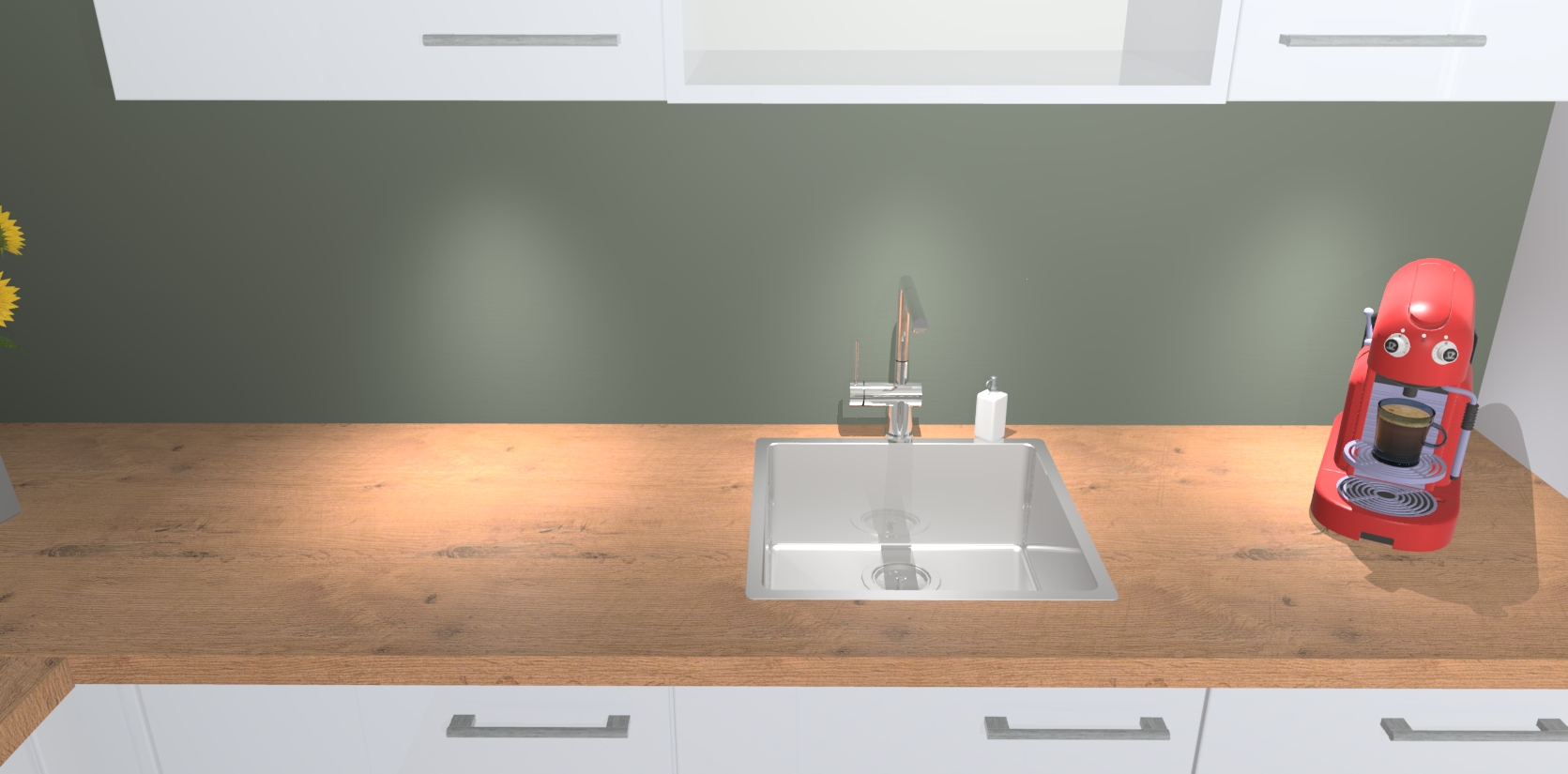 - De spoelbak is nog niet in gevreesd. Dit dient tijdens het werk gedaan te worden