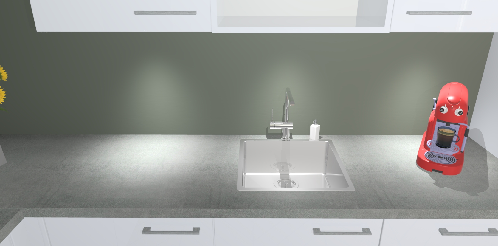 - De spoelbak is nog niet in gevreesd. Dit dient tijdens het werk gedaan te worden