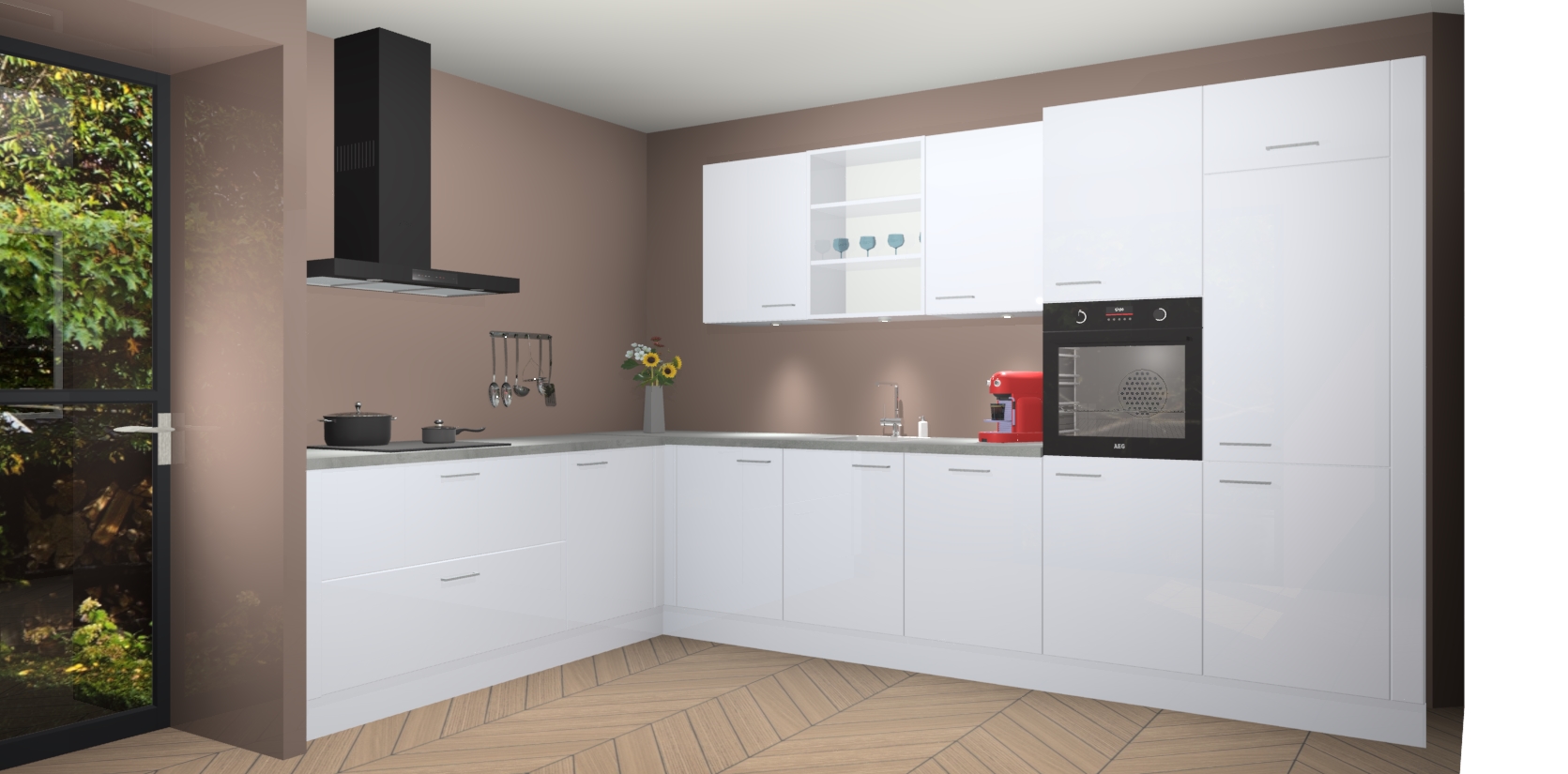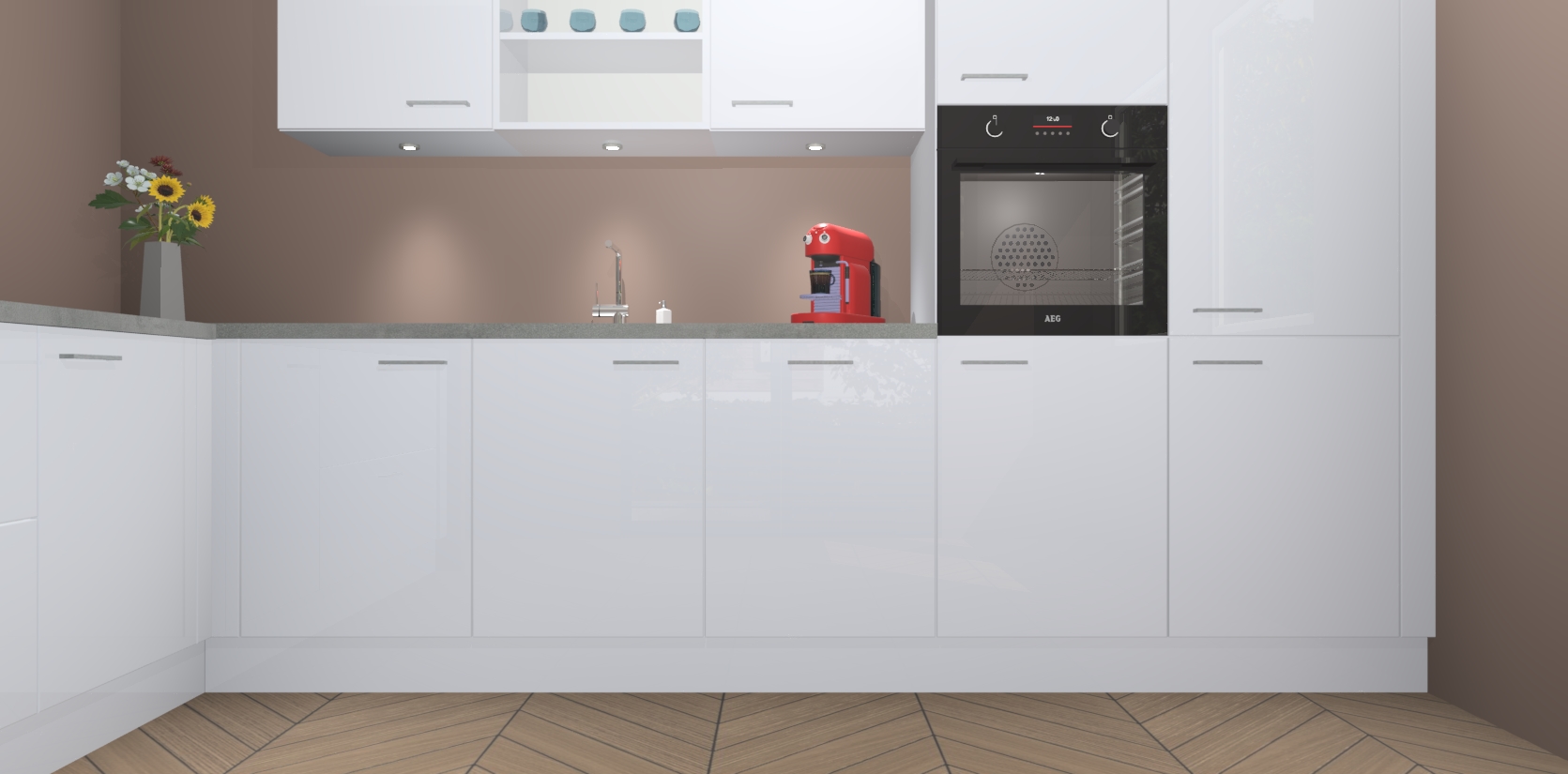 De Sneeuwwitte hoogglans keuken Gotenburg is zo ontworpen dat u alle mogelijke vormen van opslagruimte kunt genieten. Bovendien heeft u meteen toegang tot vijf ingebouwde apparaten: een oven, inductiekookplaat, afzuigkap, vaatwasser en koelkast. Gewoon upgraden naar AEG na bestelling? Dit kan heel gemakkelijk worden geregeld. De deuren sluiten zacht dankzij zachtsluitende scharnieren en ze houden warmte vast terwijl ze uitzonderlijk stil blijven wanneer ze worden geopend of gesloten.