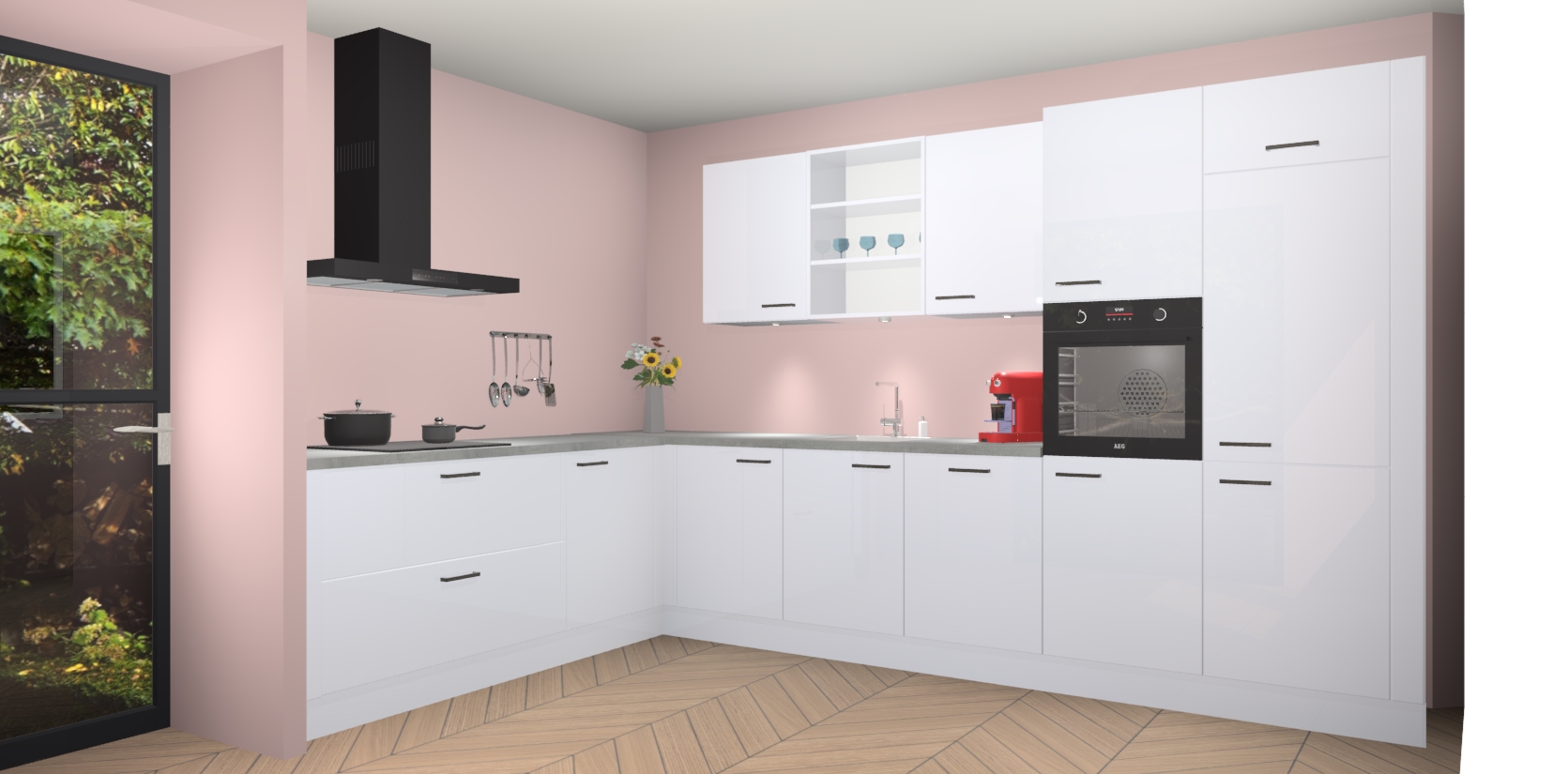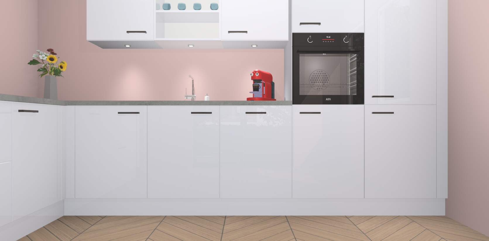 De Sneeuwwitte hoogglans keuken Gotenburg is zo ontworpen dat u alle mogelijke vormen van opslagruimte kunt genieten. Bovendien heeft u meteen toegang tot vijf ingebouwde apparaten: een oven, inductiekookplaat, afzuigkap, vaatwasser en koelkast. Gewoon upgraden naar AEG na bestelling? Dit kan heel gemakkelijk worden geregeld. De deuren sluiten zacht dankzij zachtsluitende scharnieren en ze houden warmte vast terwijl ze uitzonderlijk stil blijven wanneer ze worden geopend of gesloten.