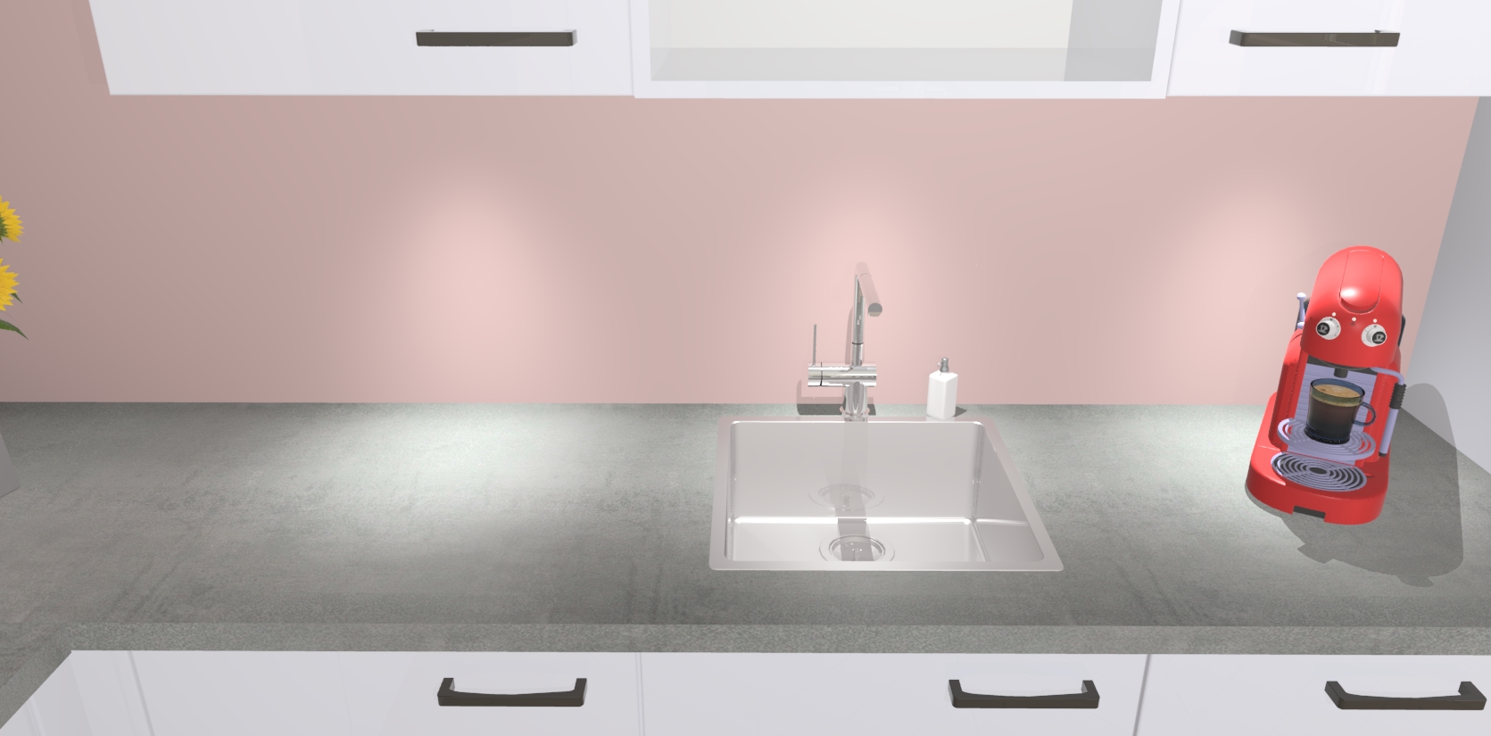 - De spoelbak is nog niet in gevreesd. Dit dient tijdens het werk gedaan te worden