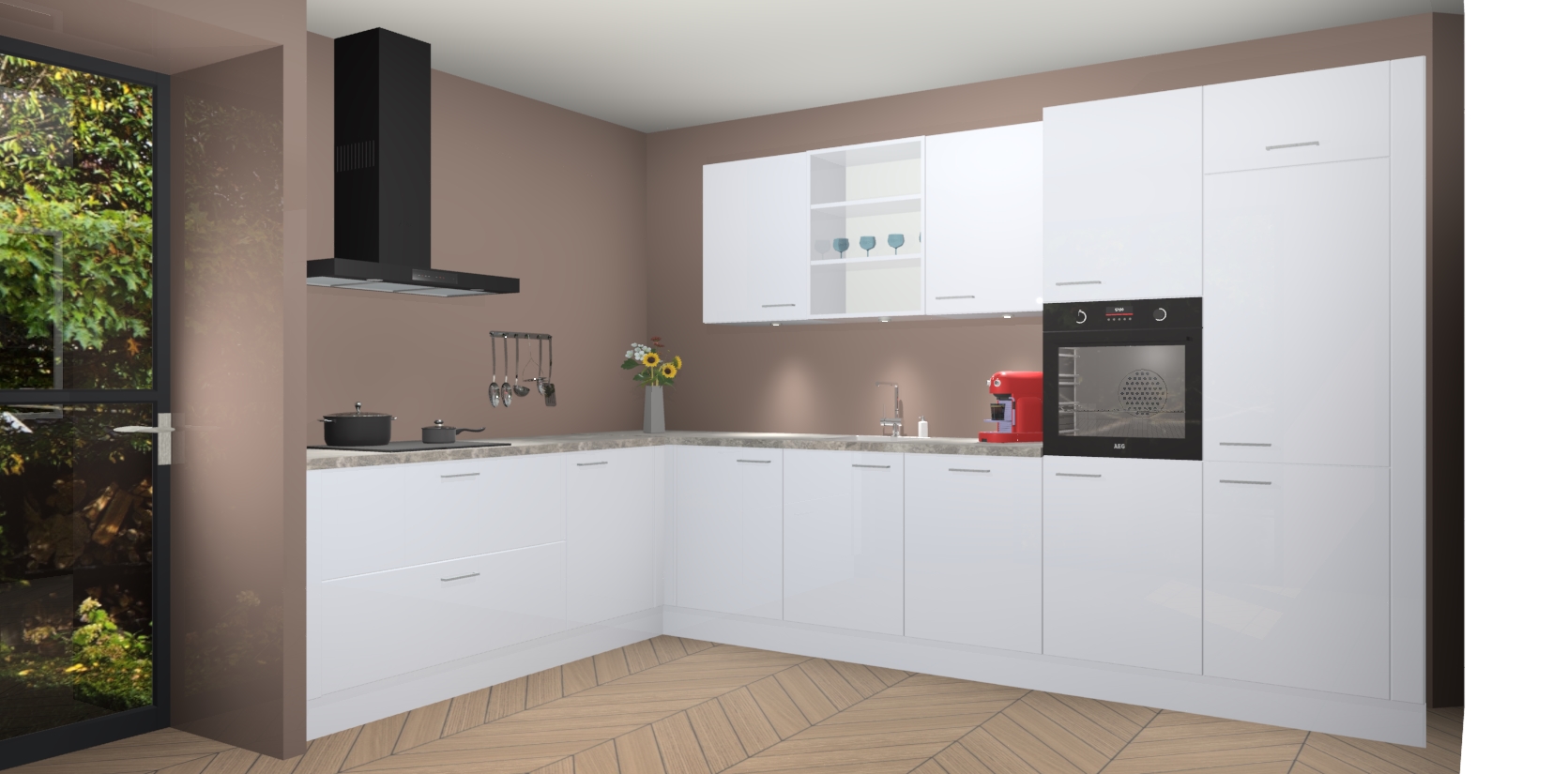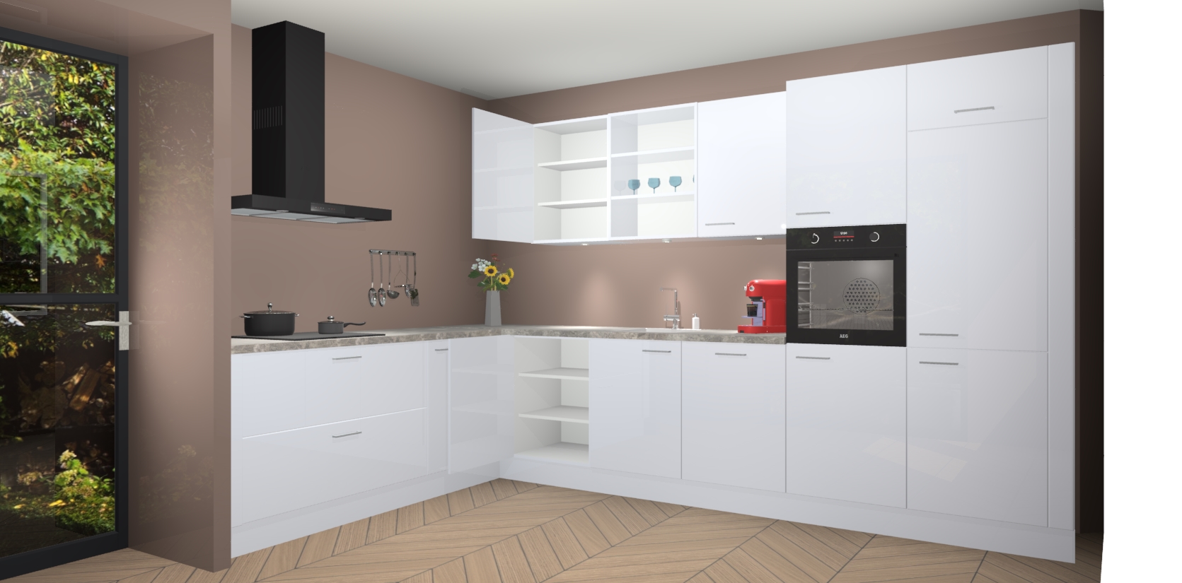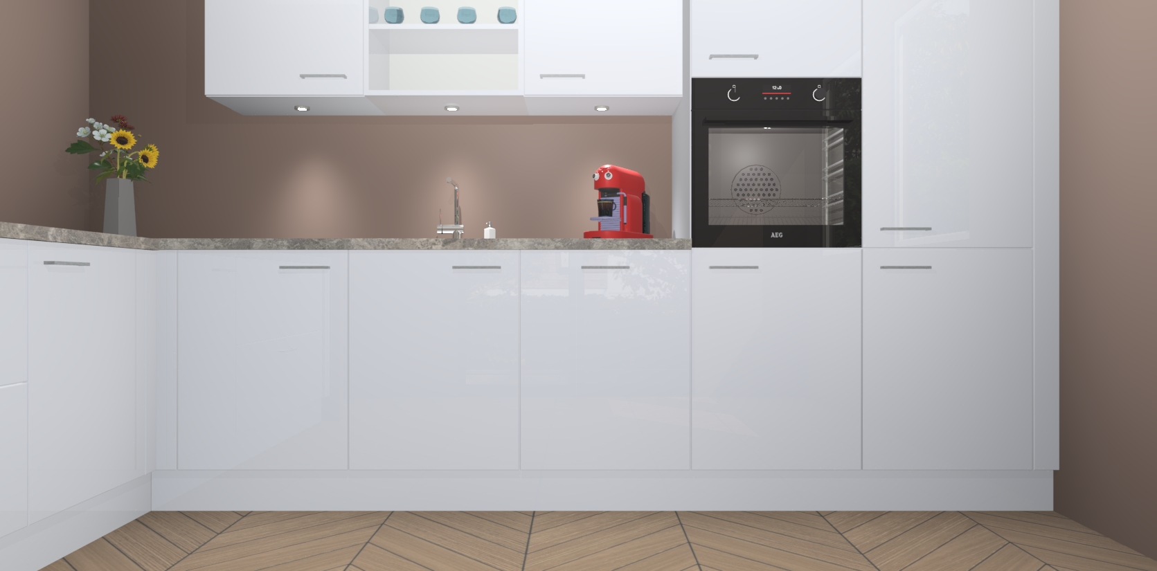 De Sneeuwwitte hoogglans keuken Gotenburg is zo ontworpen dat u alle mogelijke vormen van opslagruimte kunt genieten. Bovendien heeft u meteen toegang tot vijf ingebouwde apparaten: een oven, inductiekookplaat, afzuigkap, vaatwasser en koelkast. Gewoon upgraden naar AEG na bestelling? Dit kan heel gemakkelijk worden geregeld. De deuren sluiten zacht dankzij zachtsluitende scharnieren en ze houden warmte vast terwijl ze uitzonderlijk stil blijven wanneer ze worden geopend of gesloten.