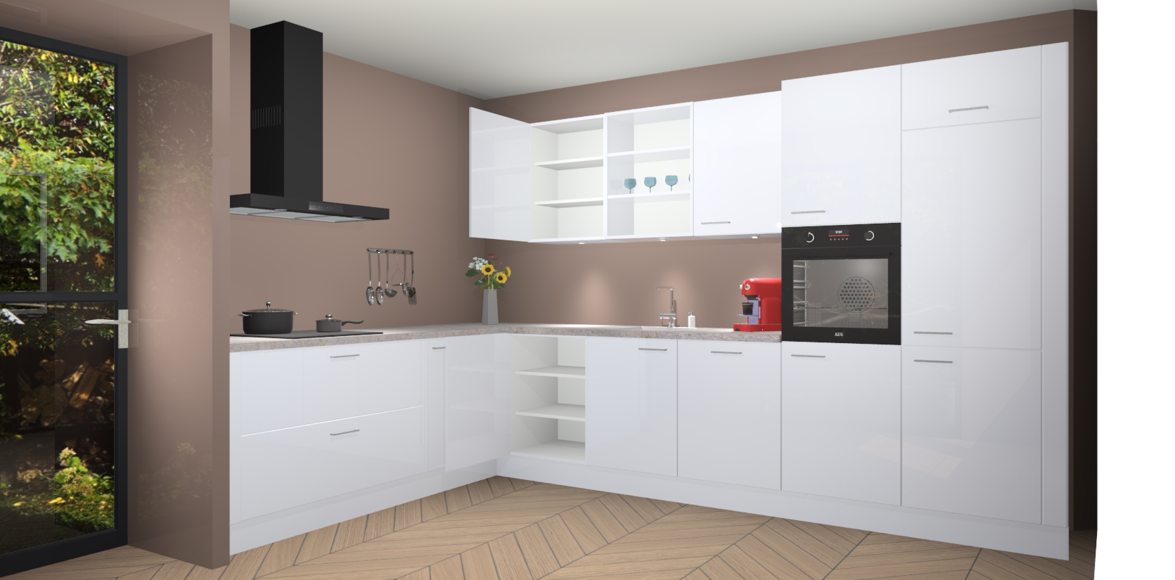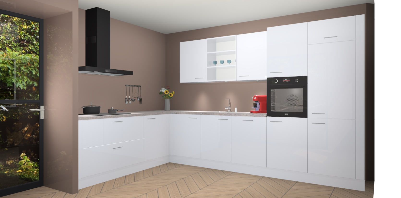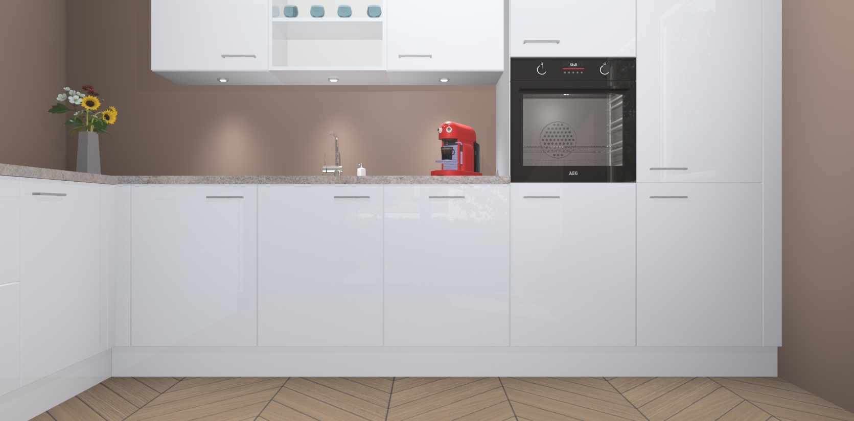 De Sneeuwwitte hoogglans keuken Gotenburg is zo ontworpen dat u alle mogelijke vormen van opslagruimte kunt genieten. Bovendien heeft u meteen toegang tot vijf ingebouwde apparaten: een oven, inductiekookplaat, afzuigkap, vaatwasser en koelkast. Gewoon upgraden naar AEG na bestelling? Dit kan heel gemakkelijk worden geregeld. De deuren sluiten zacht dankzij zachtsluitende scharnieren en ze houden warmte vast terwijl ze uitzonderlijk stil blijven wanneer ze worden geopend of gesloten.