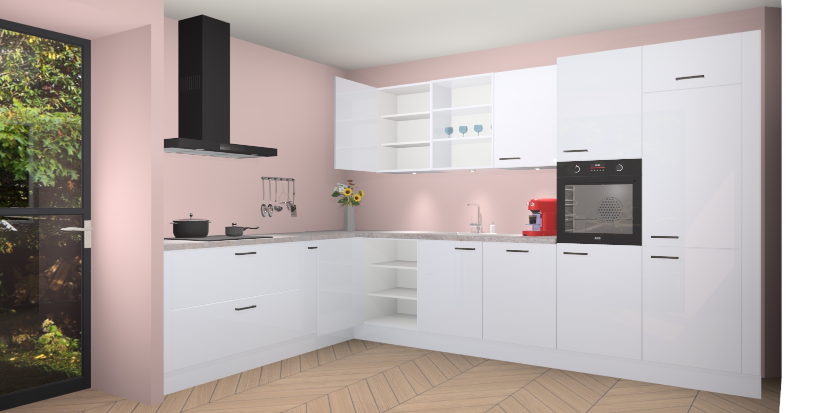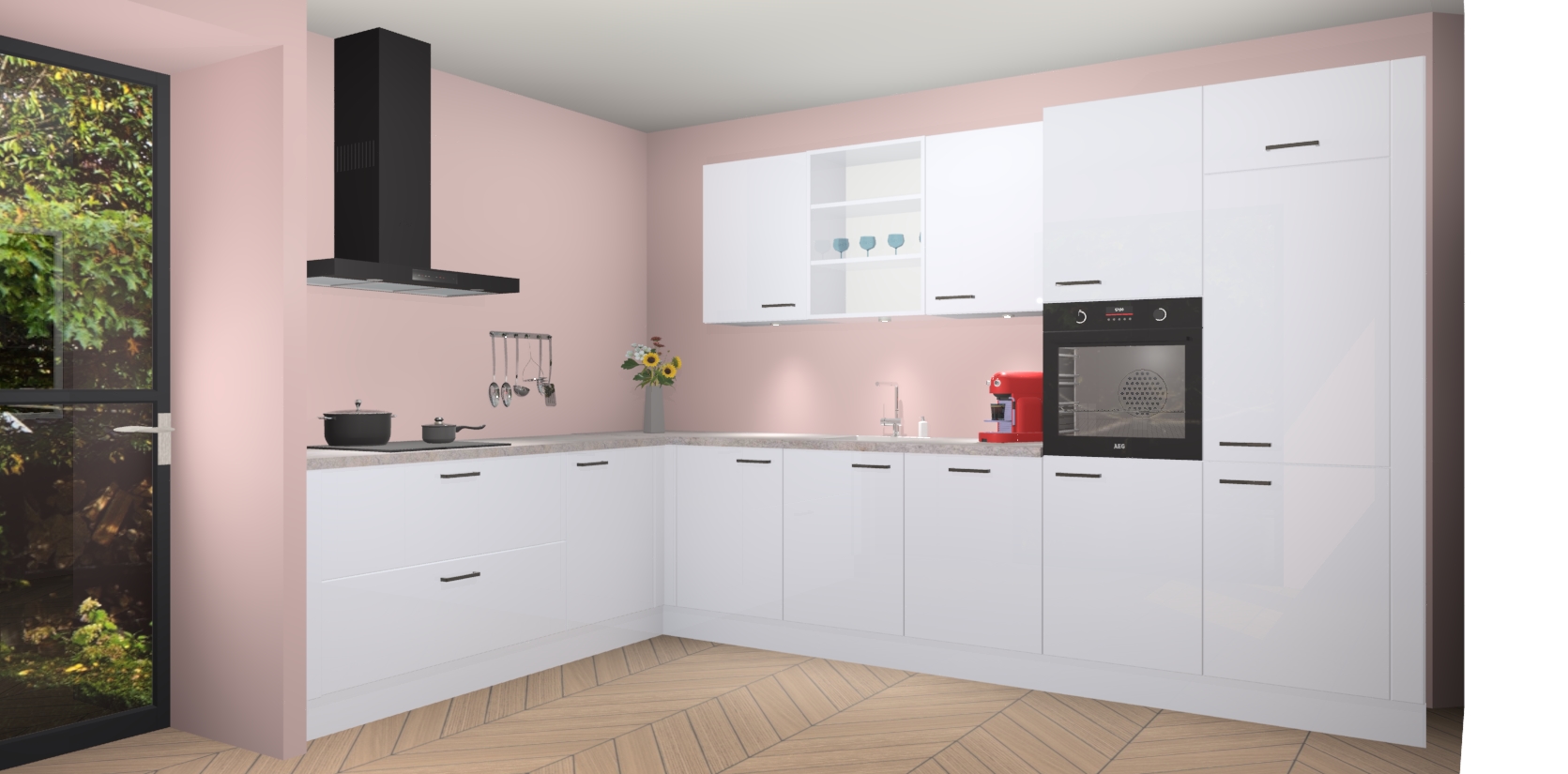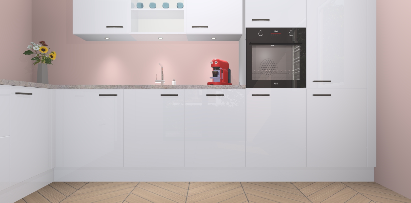De Sneeuwwitte hoogglans keuken Gotenburg is zo ontworpen dat u alle mogelijke vormen van opslagruimte kunt genieten. Bovendien heeft u meteen toegang tot vijf ingebouwde apparaten: een oven, inductiekookplaat, afzuigkap, vaatwasser en koelkast. Gewoon upgraden naar AEG na bestelling? Dit kan heel gemakkelijk worden geregeld. De deuren sluiten zacht dankzij zachtsluitende scharnieren en ze houden warmte vast terwijl ze uitzonderlijk stil blijven wanneer ze worden geopend of gesloten.