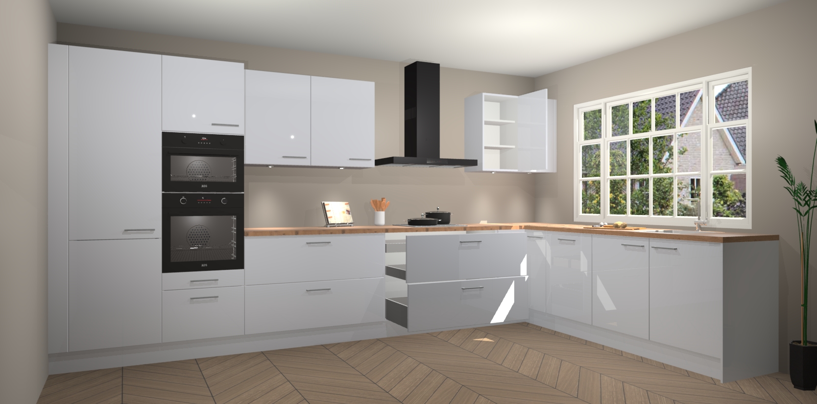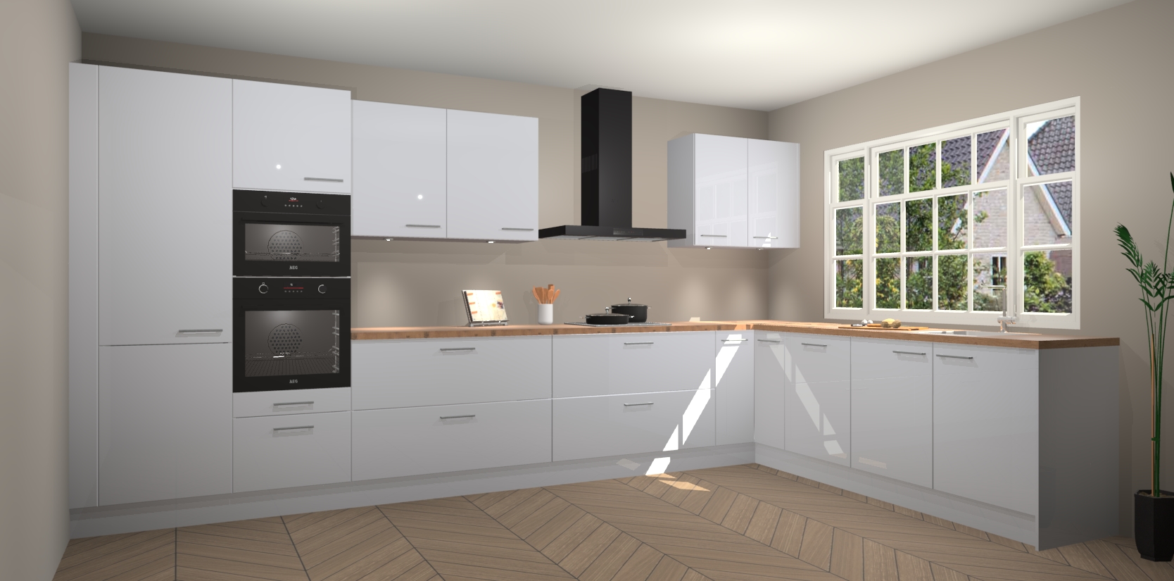 Kom dichtbij de perfecte keuken van uw dromen met de sneeuwwitte hoogglans keuken Graz. Met een prachtige houtlook en eigentijds ontwerp, straalt deze keuken warmte en sfeer uit. Of u nu liefhebber bent van traditionele of moderne stijlen, er is genoeg ruimte om aan al uw behoeften te voldoen.