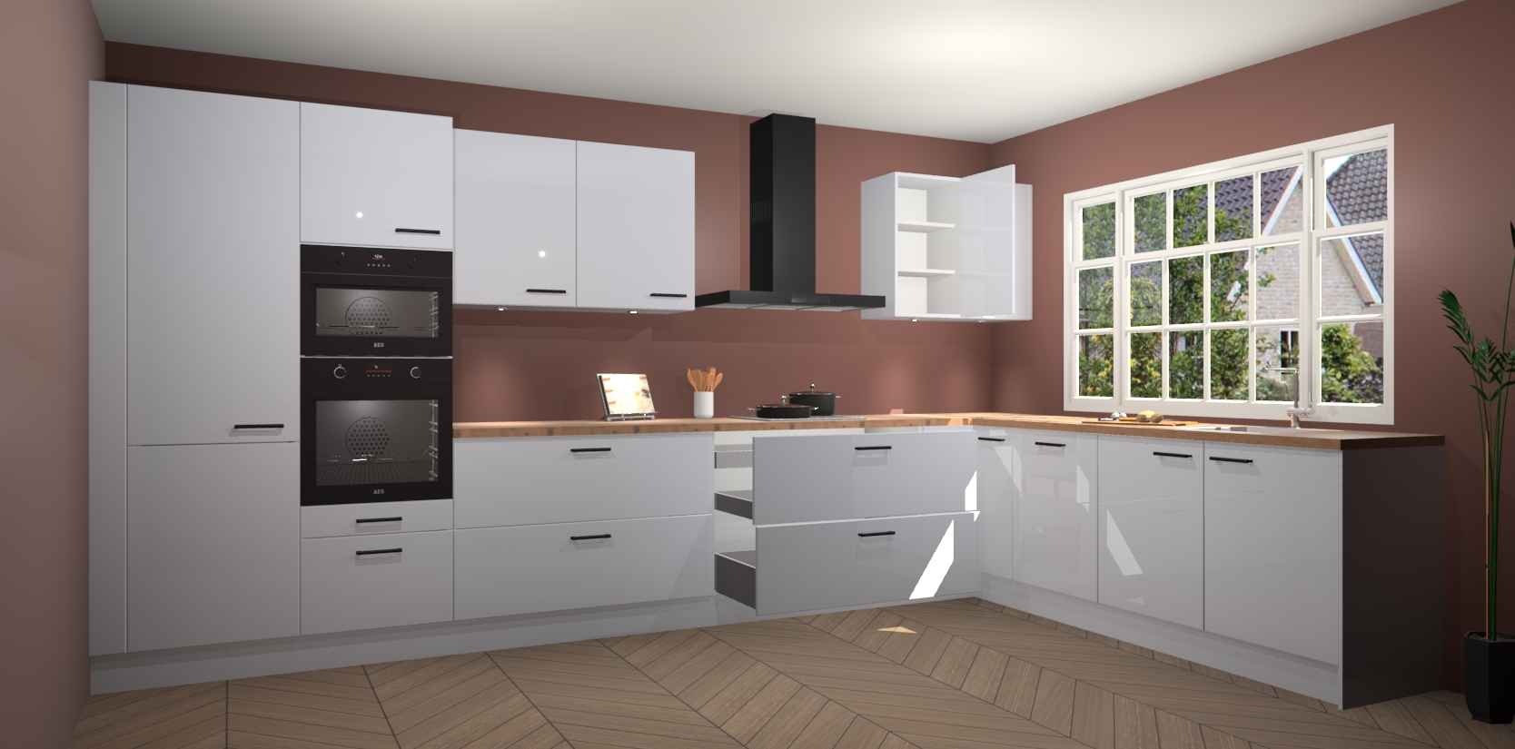 Kom dichtbij de perfecte keuken van uw dromen met de sneeuwwitte hoogglans keuken Graz. Met een prachtige houtlook en eigentijds ontwerp, straalt deze keuken warmte en sfeer uit. Of u nu liefhebber bent van traditionele of moderne stijlen, er is genoeg ruimte om aan al uw behoeften te voldoen.