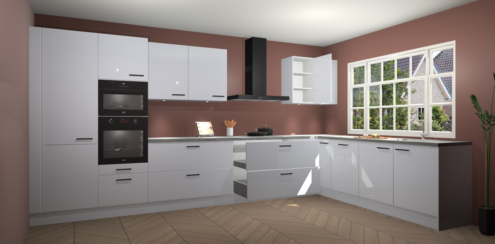 Kom dichtbij de perfecte keuken van uw dromen met de sneeuwwitte hoogglans keuken Graz. Met een prachtige houtlook en eigentijds ontwerp, straalt deze keuken warmte en sfeer uit. Of u nu liefhebber bent van traditionele of moderne stijlen, er is genoeg ruimte om aan al uw behoeften te voldoen.