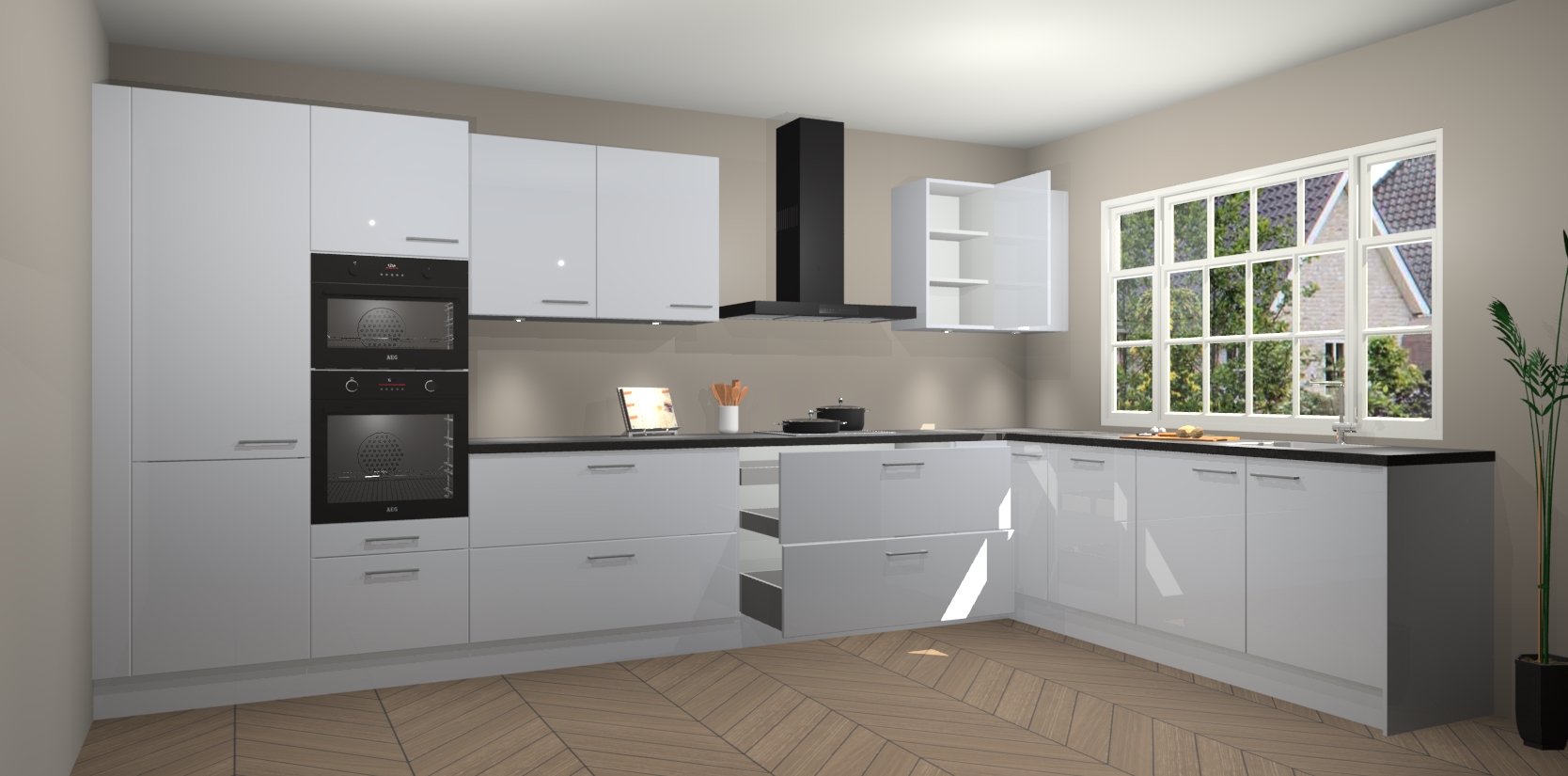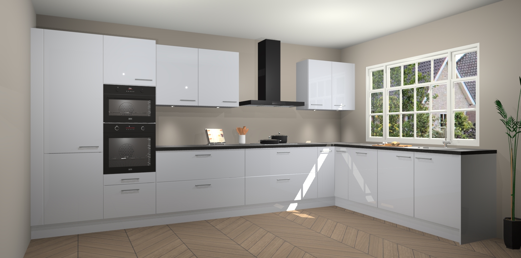 Kom dichtbij de perfecte keuken van uw dromen met de sneeuwwitte hoogglans keuken Graz. Met een prachtige houtlook en eigentijds ontwerp, straalt deze keuken warmte en sfeer uit. Of u nu liefhebber bent van traditionele of moderne stijlen, er is genoeg ruimte om aan al uw behoeften te voldoen.