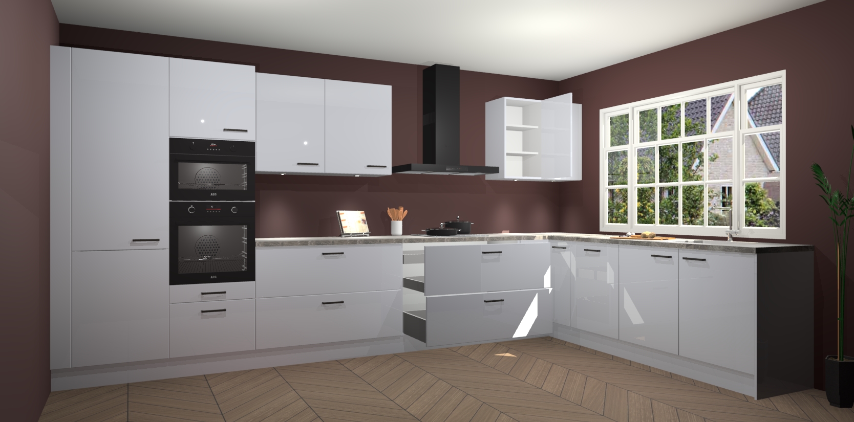 Kom dichtbij de perfecte keuken van uw dromen met de sneeuwwitte hoogglans keuken Graz. Met een prachtige houtlook en eigentijds ontwerp, straalt deze keuken warmte en sfeer uit. Of u nu liefhebber bent van traditionele of moderne stijlen, er is genoeg ruimte om aan al uw behoeften te voldoen.