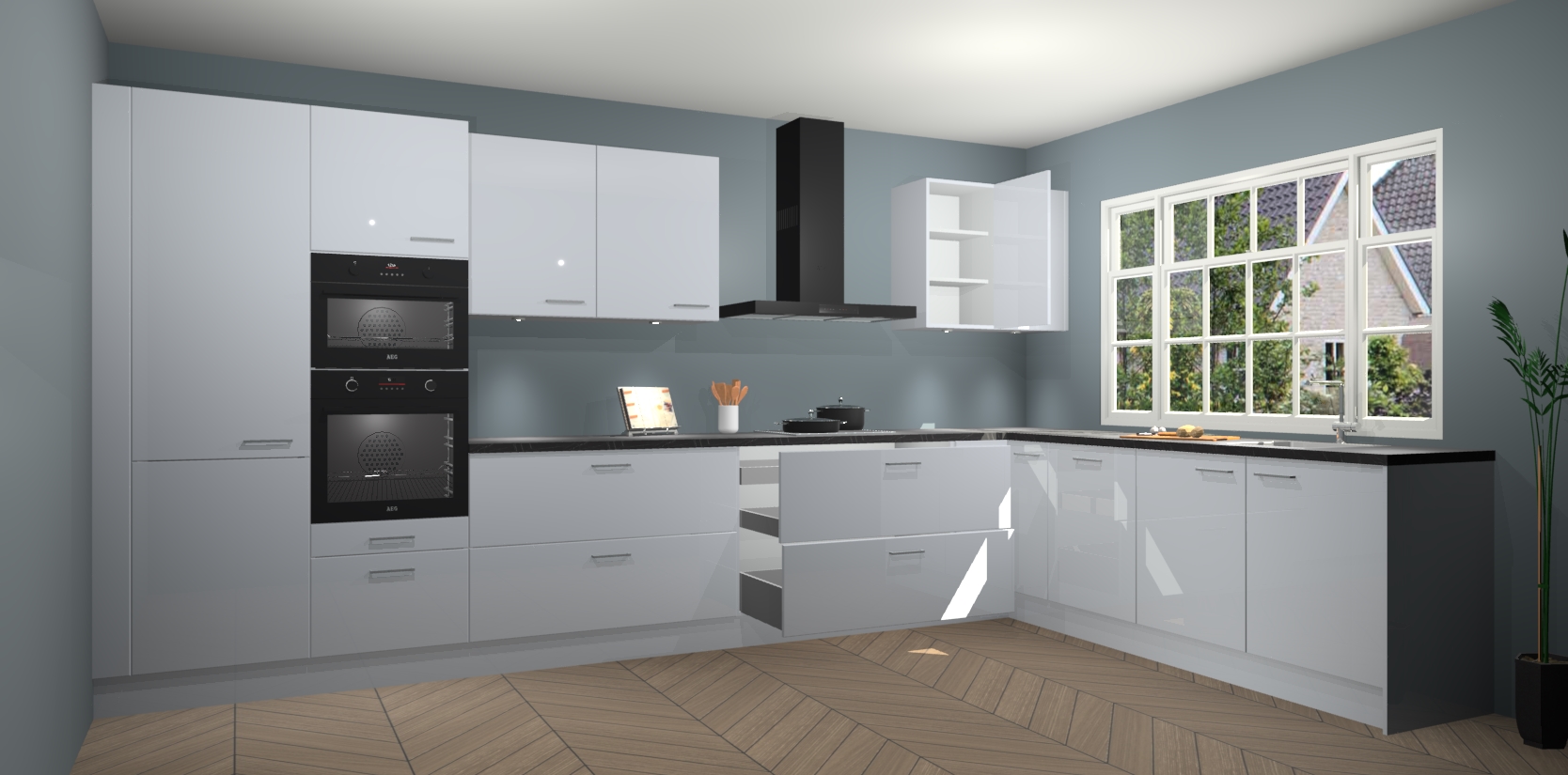 Kom dichtbij de perfecte keuken van uw dromen met de sneeuwwitte hoogglans keuken Graz. Met een prachtige houtlook en eigentijds ontwerp, straalt deze keuken warmte en sfeer uit. Of u nu liefhebber bent van traditionele of moderne stijlen, er is genoeg ruimte om aan al uw behoeften te voldoen.