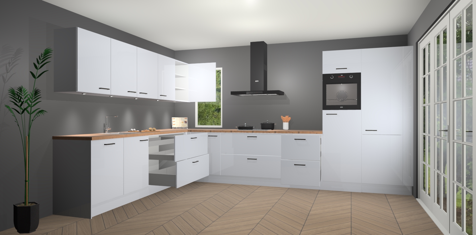 Heeft u nog apparatuur nodig? Geen probleem: de sneeuwwitte hoogglans keuken Harare bevat vijf ingebouwde apparaten - een oven, inductiekookplaat, afzuigkap, vaatwasser en koelkast - die gemakkelijk kunnen worden bijgewerkt naar AEG na bestelling. En als dat nog niet genoeg is; onze kasten worden pre-geassembleerd geleverd en zijn verkrijgbaar tegen een vastgeroeste lage prijs! U hoeft nooit meer te zoeken naar goede kwaliteit en service want onze producten hebben echt Duitse kwaliteit.