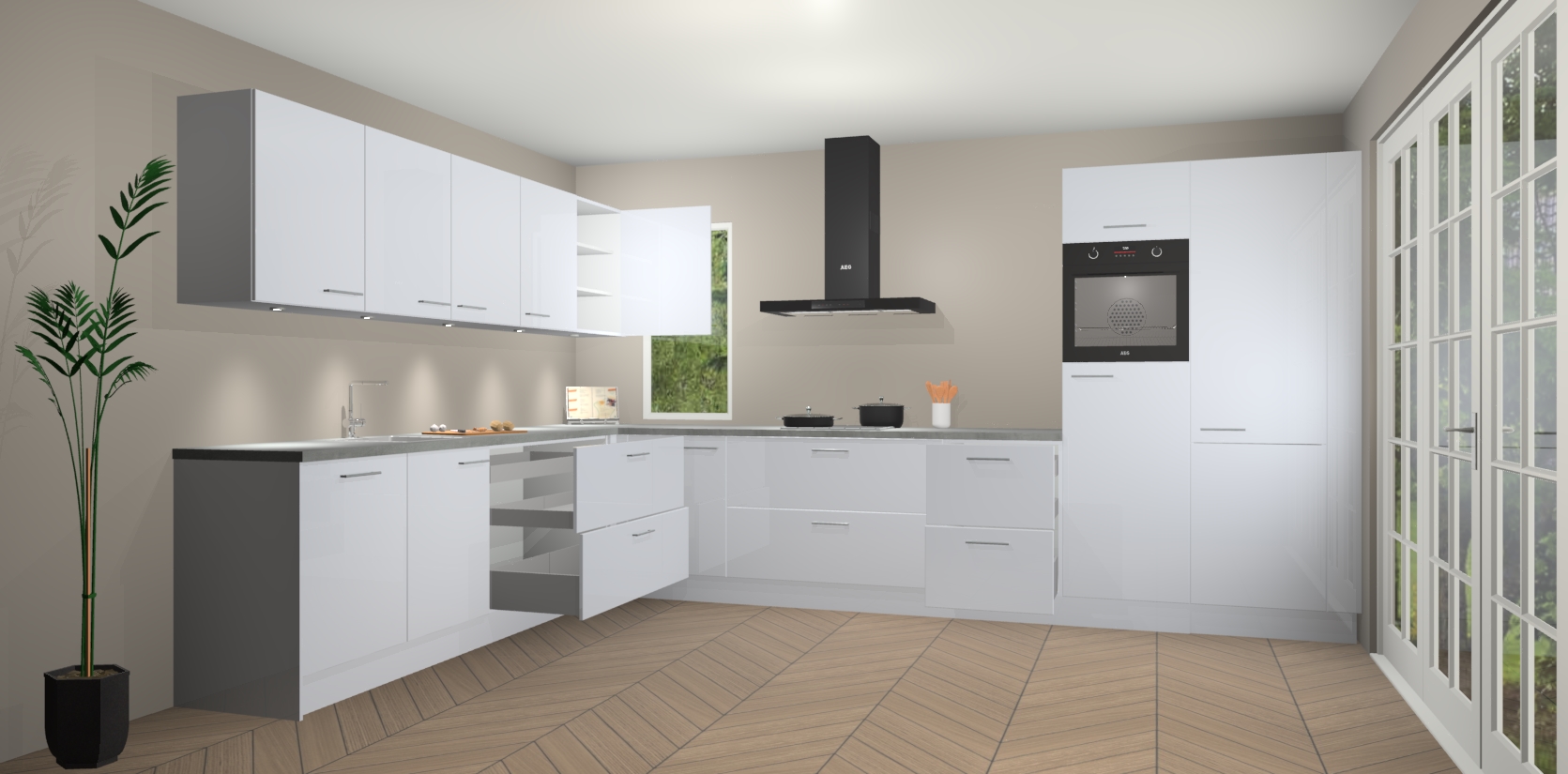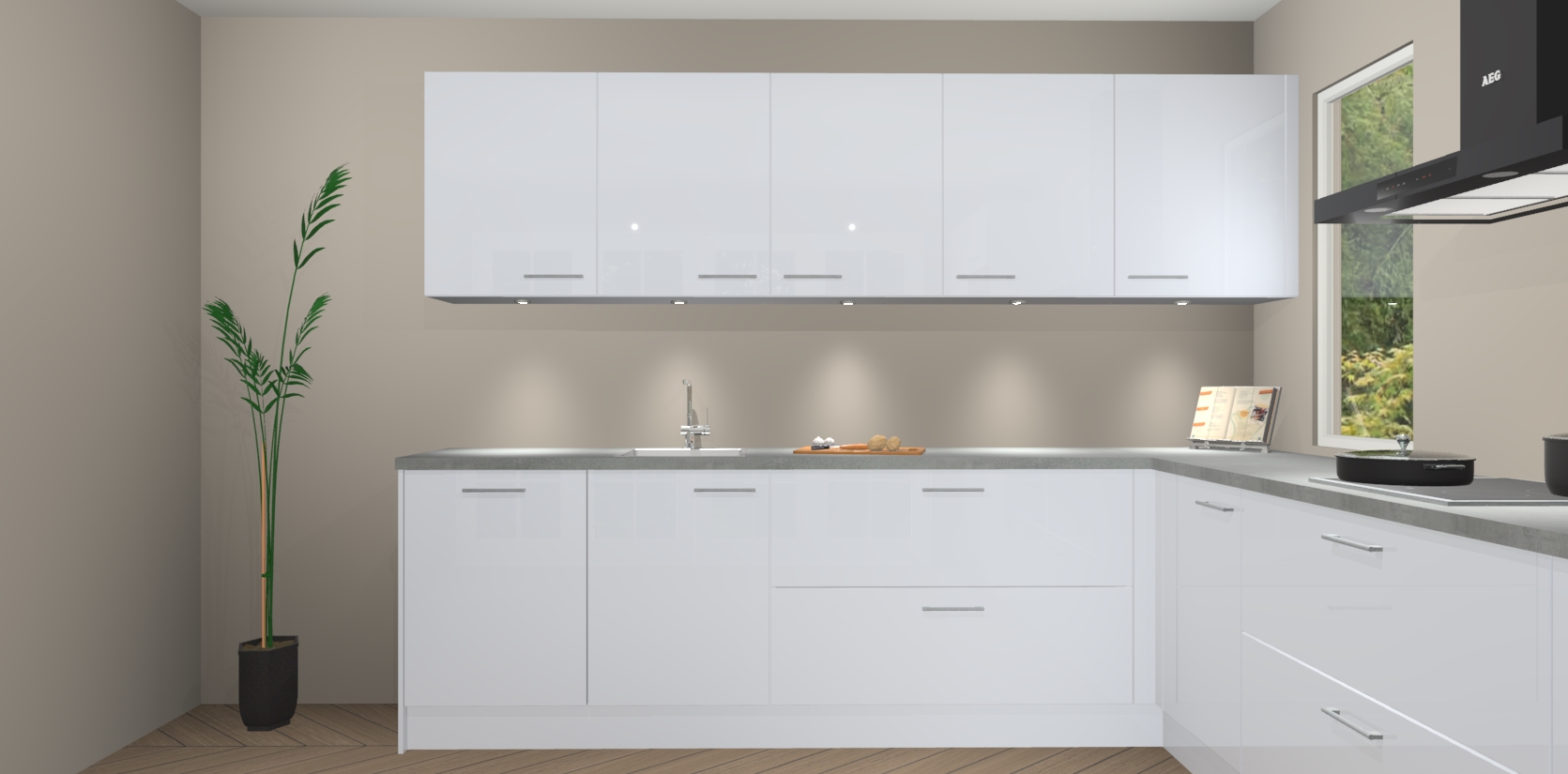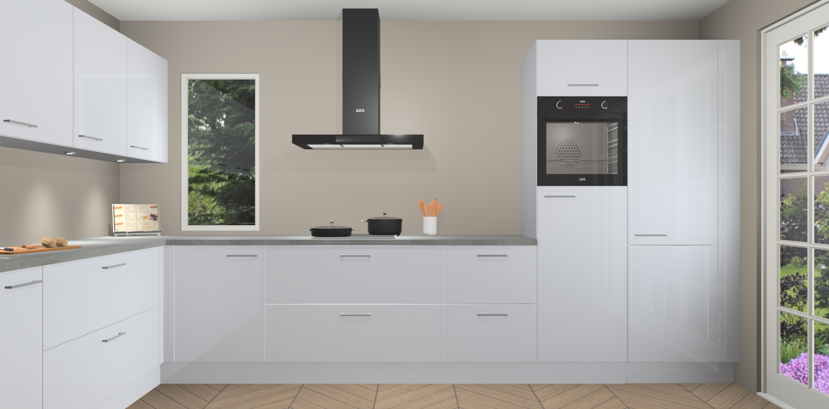 Heeft u nog apparatuur nodig? Geen probleem: de sneeuwwitte hoogglans keuken Harare bevat vijf ingebouwde apparaten - een oven, inductiekookplaat, afzuigkap, vaatwasser en koelkast - die gemakkelijk kunnen worden bijgewerkt naar AEG na bestelling. En als dat nog niet genoeg is; onze kasten worden pre-geassembleerd geleverd en zijn verkrijgbaar tegen een vastgeroeste lage prijs! U hoeft nooit meer te zoeken naar goede kwaliteit en service want onze producten hebben echt Duitse kwaliteit.