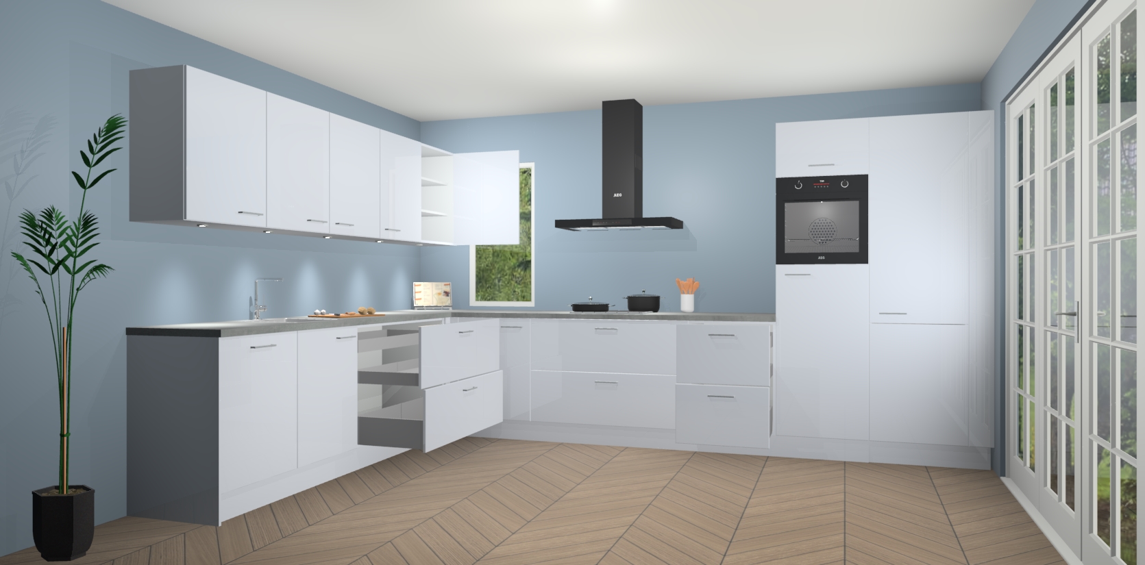 Heeft u nog apparatuur nodig? Geen probleem: de sneeuwwitte hoogglans keuken Harare bevat vijf ingebouwde apparaten - een oven, inductiekookplaat, afzuigkap, vaatwasser en koelkast - die gemakkelijk kunnen worden bijgewerkt naar AEG na bestelling. En als dat nog niet genoeg is; onze kasten worden pre-geassembleerd geleverd en zijn verkrijgbaar tegen een vastgeroeste lage prijs! U hoeft nooit meer te zoeken naar goede kwaliteit en service want onze producten hebben echt Duitse kwaliteit.