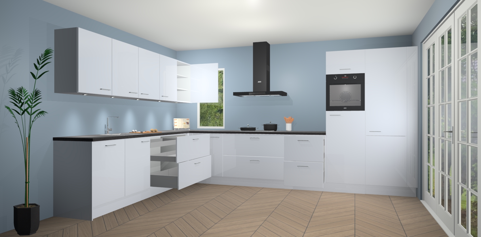 Heeft u nog apparatuur nodig? Geen probleem: de sneeuwwitte hoogglans keuken Harare bevat vijf ingebouwde apparaten - een oven, inductiekookplaat, afzuigkap, vaatwasser en koelkast - die gemakkelijk kunnen worden bijgewerkt naar AEG na bestelling. En als dat nog niet genoeg is; onze kasten worden pre-geassembleerd geleverd en zijn verkrijgbaar tegen een vastgeroeste lage prijs! U hoeft nooit meer te zoeken naar goede kwaliteit en service want onze producten hebben echt Duitse kwaliteit.
