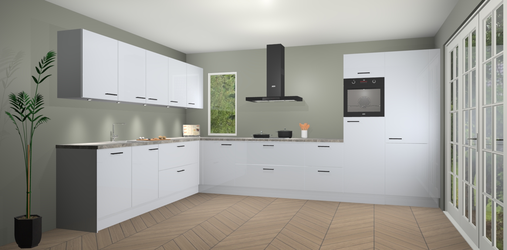Kom dichtbij de perfecte keuken van uw dromen met de sneeuwwitte hoogglans keuken Harare. Met een prachtige houtlook en eigentijds ontwerp, straalt deze keuken warmte en sfeer uit. Of u nu liefhebber bent van traditionele of moderne stijlen, er is genoeg ruimte om aan al uw behoeften te voldoen.