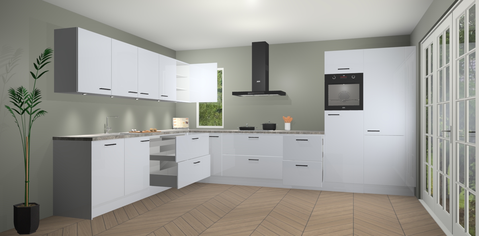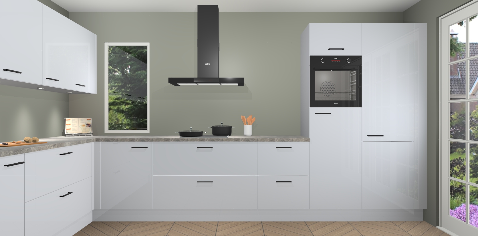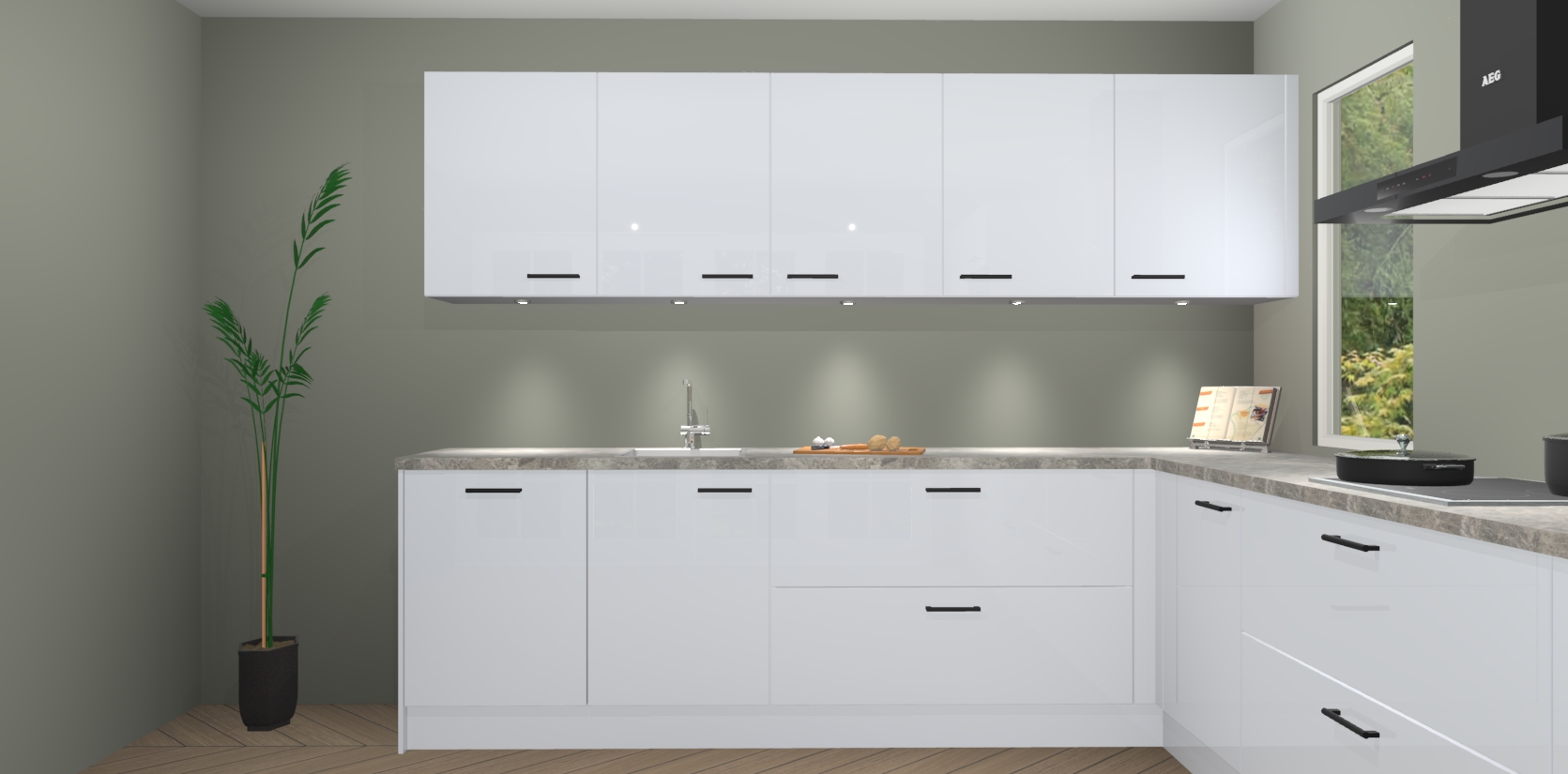 Heeft u nog apparatuur nodig? Geen probleem: de sneeuwwitte hoogglans keuken Harare bevat vijf ingebouwde apparaten - een oven, inductiekookplaat, afzuigkap, vaatwasser en koelkast - die gemakkelijk kunnen worden bijgewerkt naar AEG na bestelling. En als dat nog niet genoeg is; onze kasten worden pre-geassembleerd geleverd en zijn verkrijgbaar tegen een vastgeroeste lage prijs! U hoeft nooit meer te zoeken naar goede kwaliteit en service want onze producten hebben echt Duitse kwaliteit.