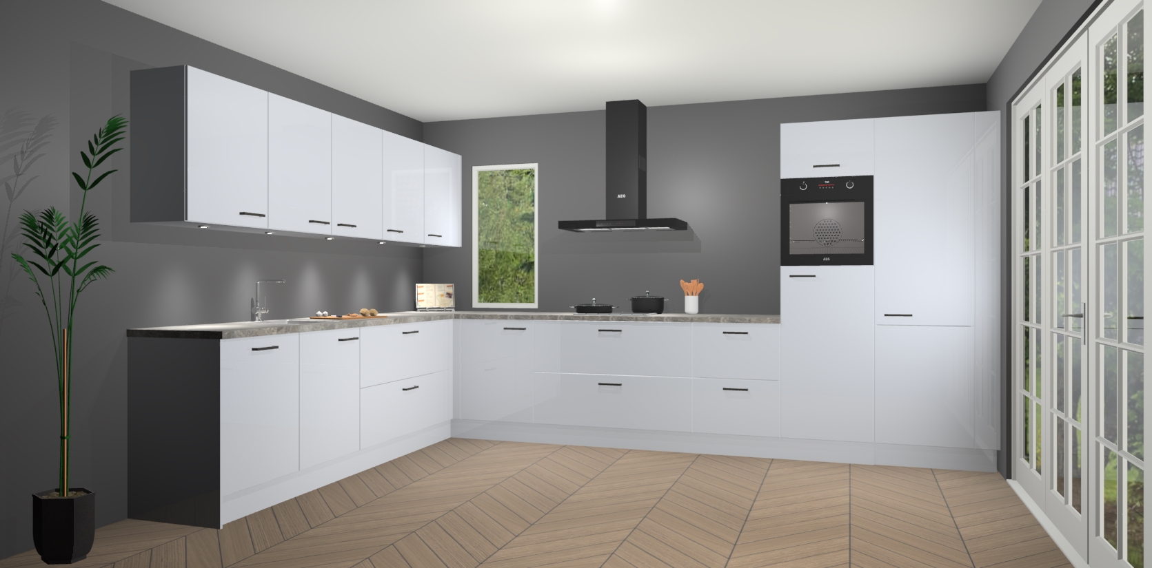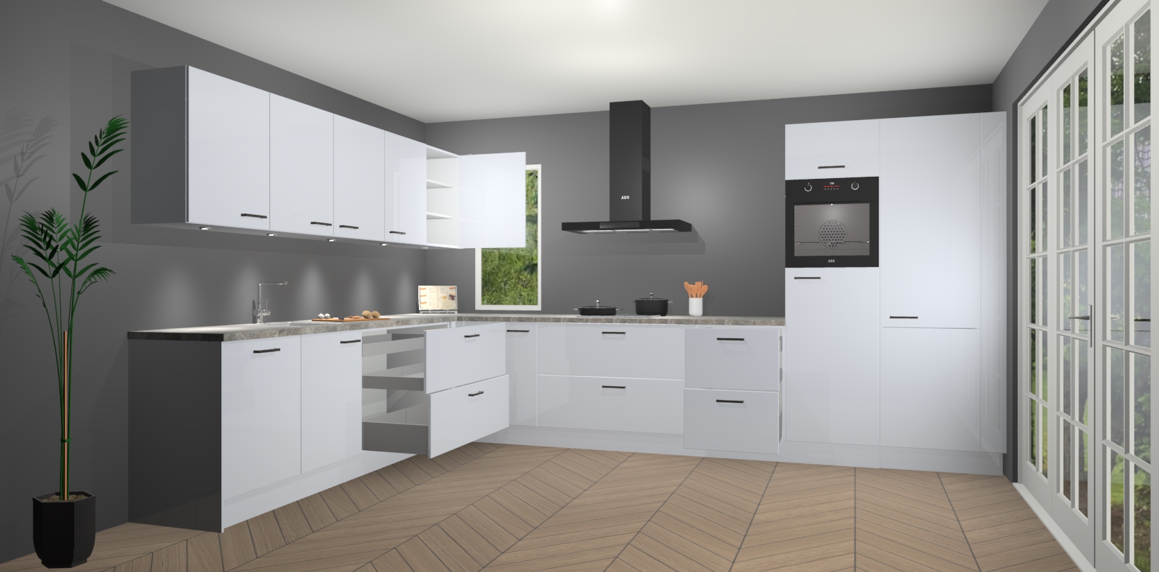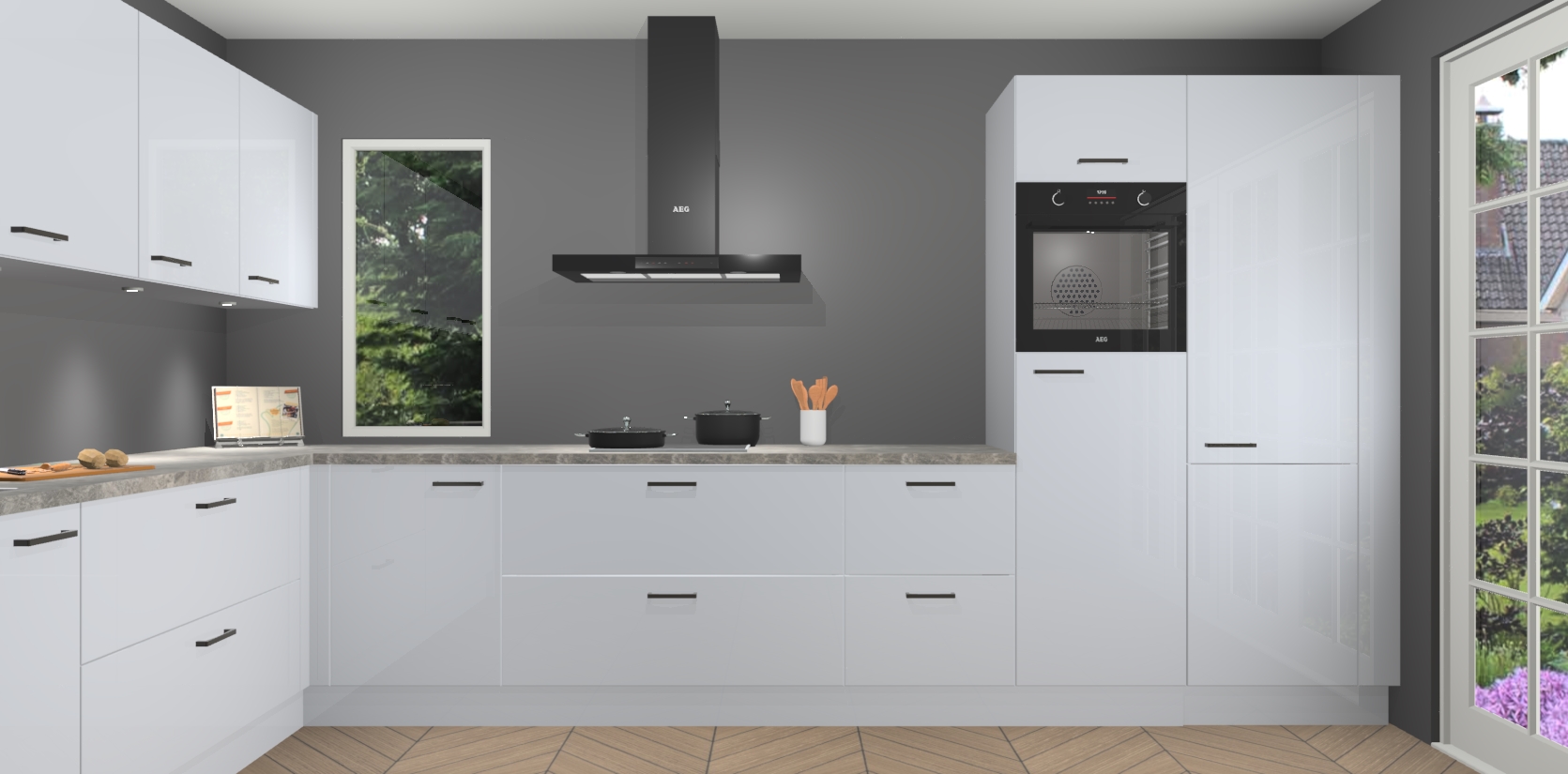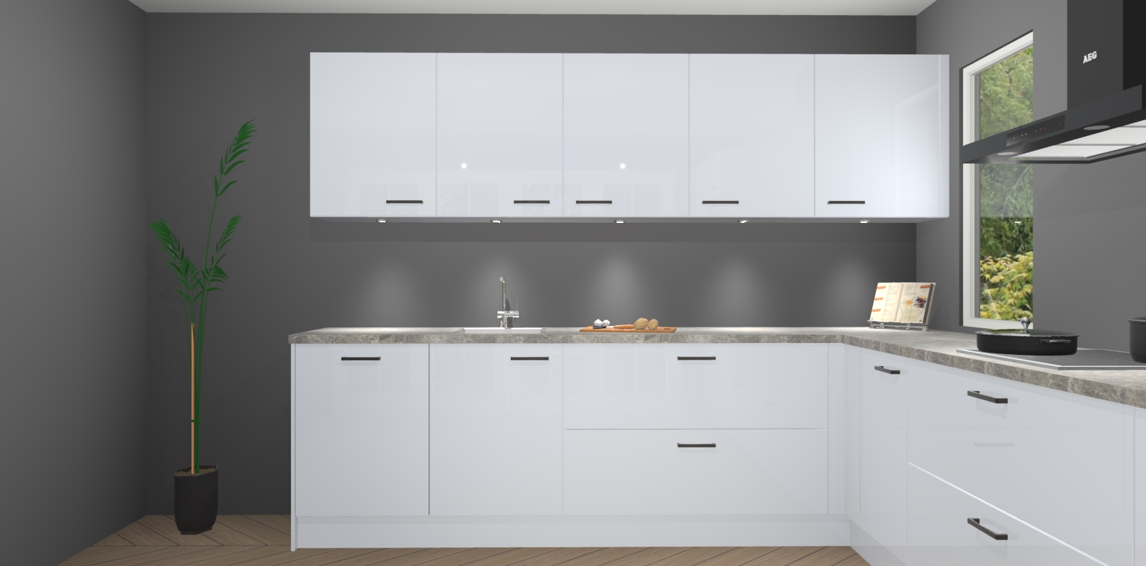 Heeft u nog apparatuur nodig? Geen probleem: de sneeuwwitte hoogglans keuken Harare bevat vijf ingebouwde apparaten - een oven, inductiekookplaat, afzuigkap, vaatwasser en koelkast - die gemakkelijk kunnen worden bijgewerkt naar AEG na bestelling. En als dat nog niet genoeg is; onze kasten worden pre-geassembleerd geleverd en zijn verkrijgbaar tegen een vastgeroeste lage prijs! U hoeft nooit meer te zoeken naar goede kwaliteit en service want onze producten hebben echt Duitse kwaliteit.