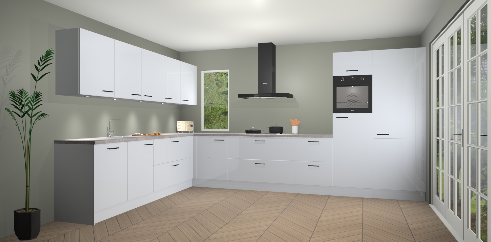 Kom dichtbij de perfecte keuken van uw dromen met de sneeuwwitte hoogglans keuken Harare. Met een prachtige houtlook en eigentijds ontwerp, straalt deze keuken warmte en sfeer uit. Of u nu liefhebber bent van traditionele of moderne stijlen, er is genoeg ruimte om aan al uw behoeften te voldoen.
