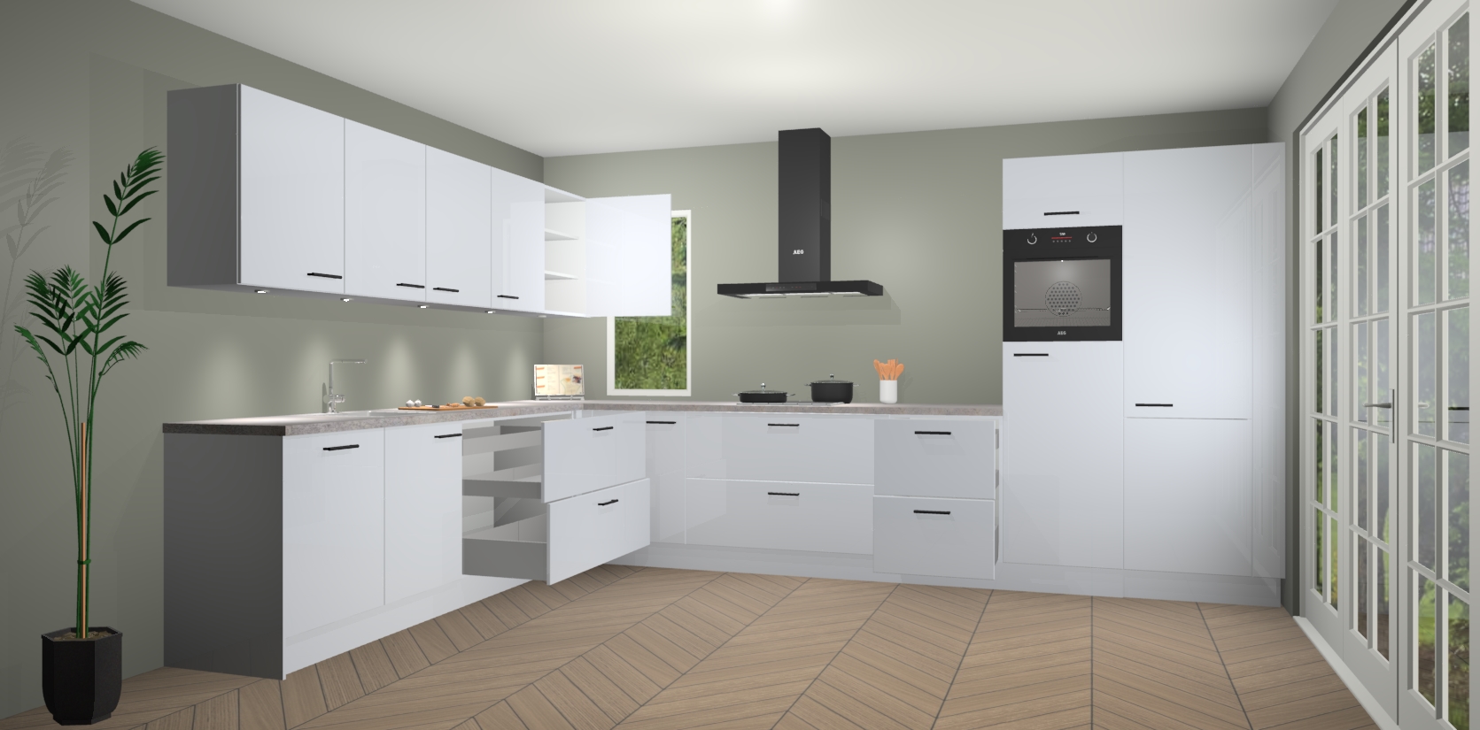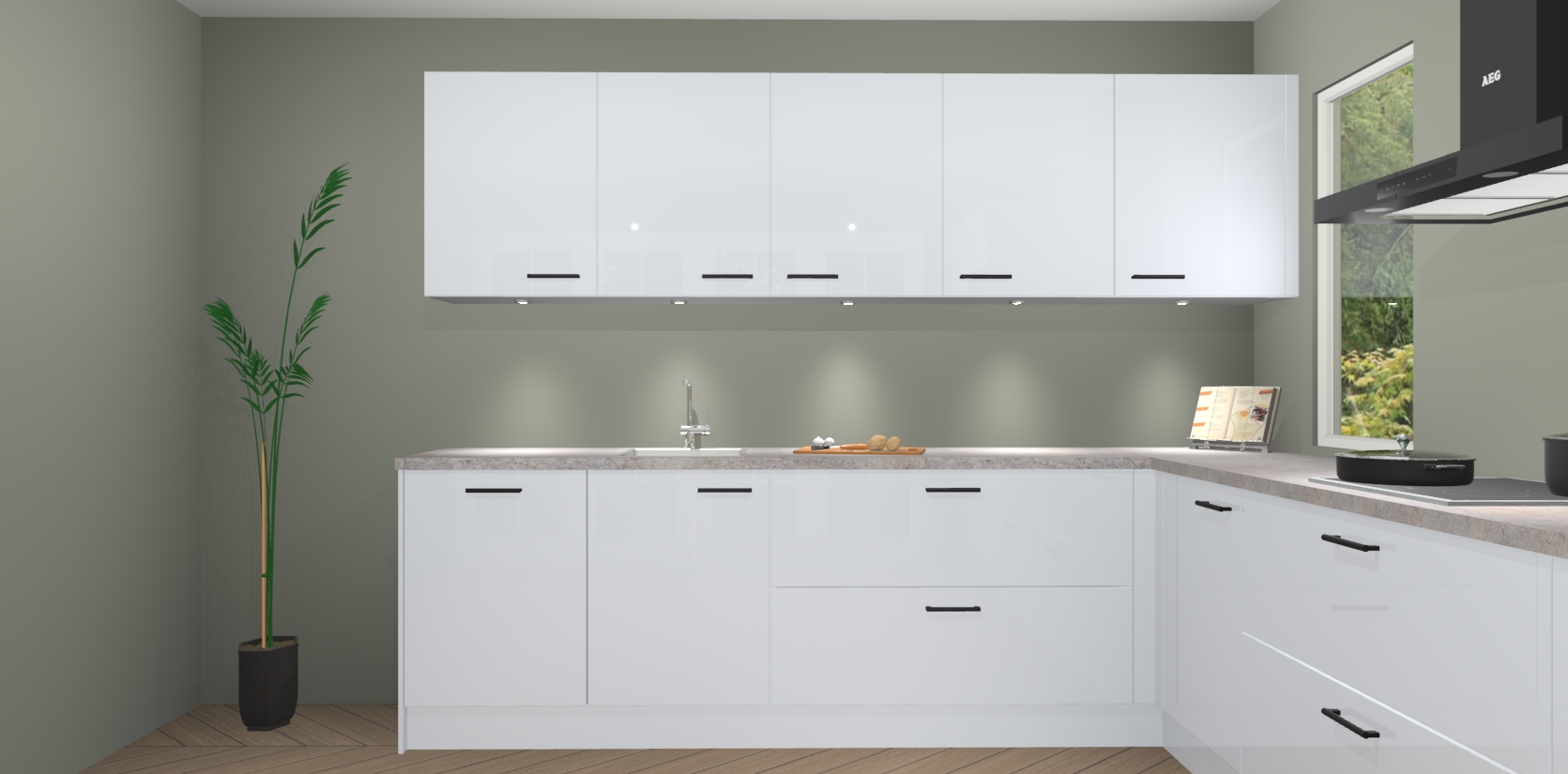Heeft u nog apparatuur nodig? Geen probleem: de sneeuwwitte hoogglans keuken Harare bevat vijf ingebouwde apparaten - een oven, inductiekookplaat, afzuigkap, vaatwasser en koelkast - die gemakkelijk kunnen worden bijgewerkt naar AEG na bestelling. En als dat nog niet genoeg is; onze kasten worden pre-geassembleerd geleverd en zijn verkrijgbaar tegen een vastgeroeste lage prijs! U hoeft nooit meer te zoeken naar goede kwaliteit en service want onze producten hebben echt Duitse kwaliteit.