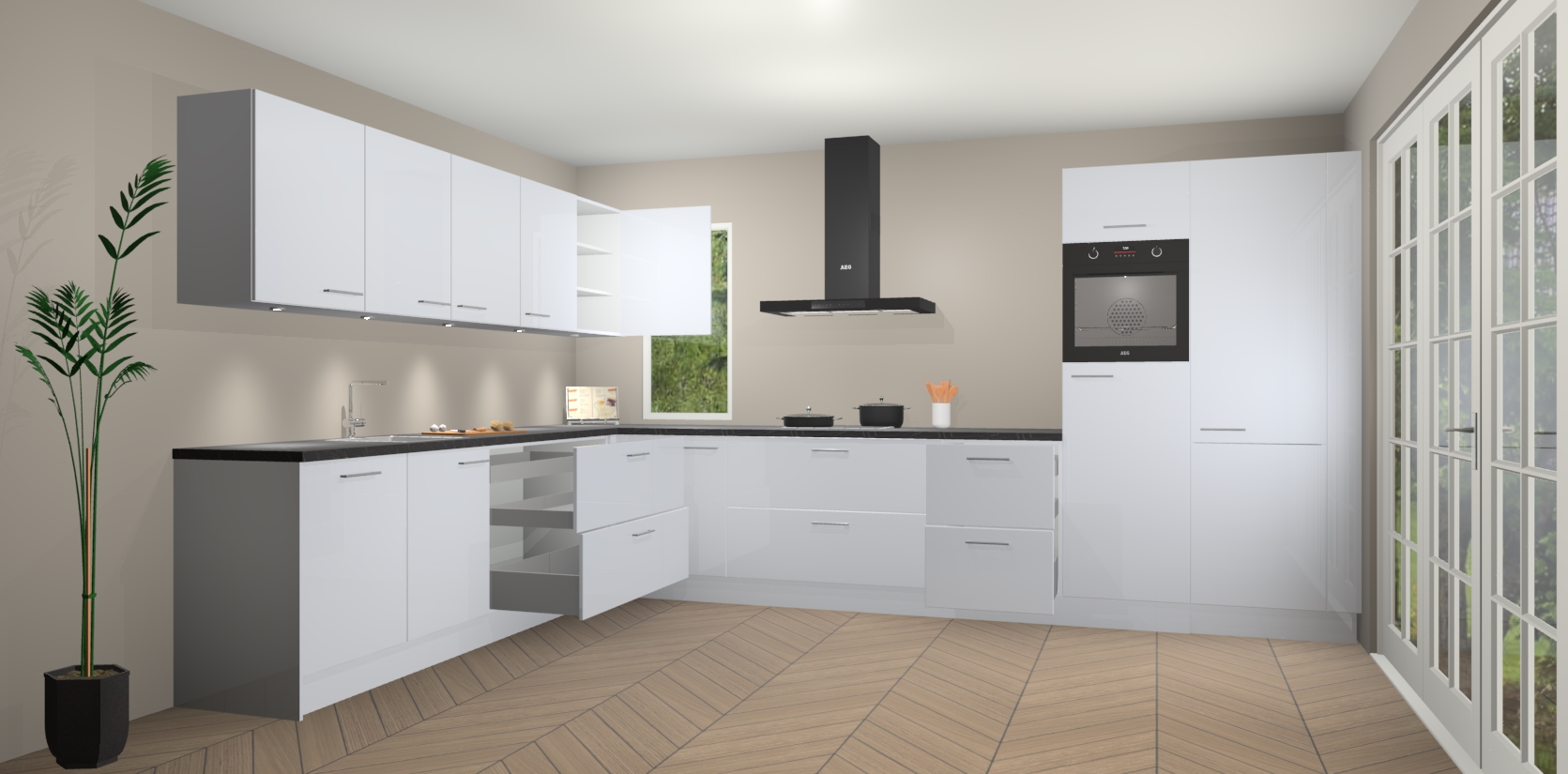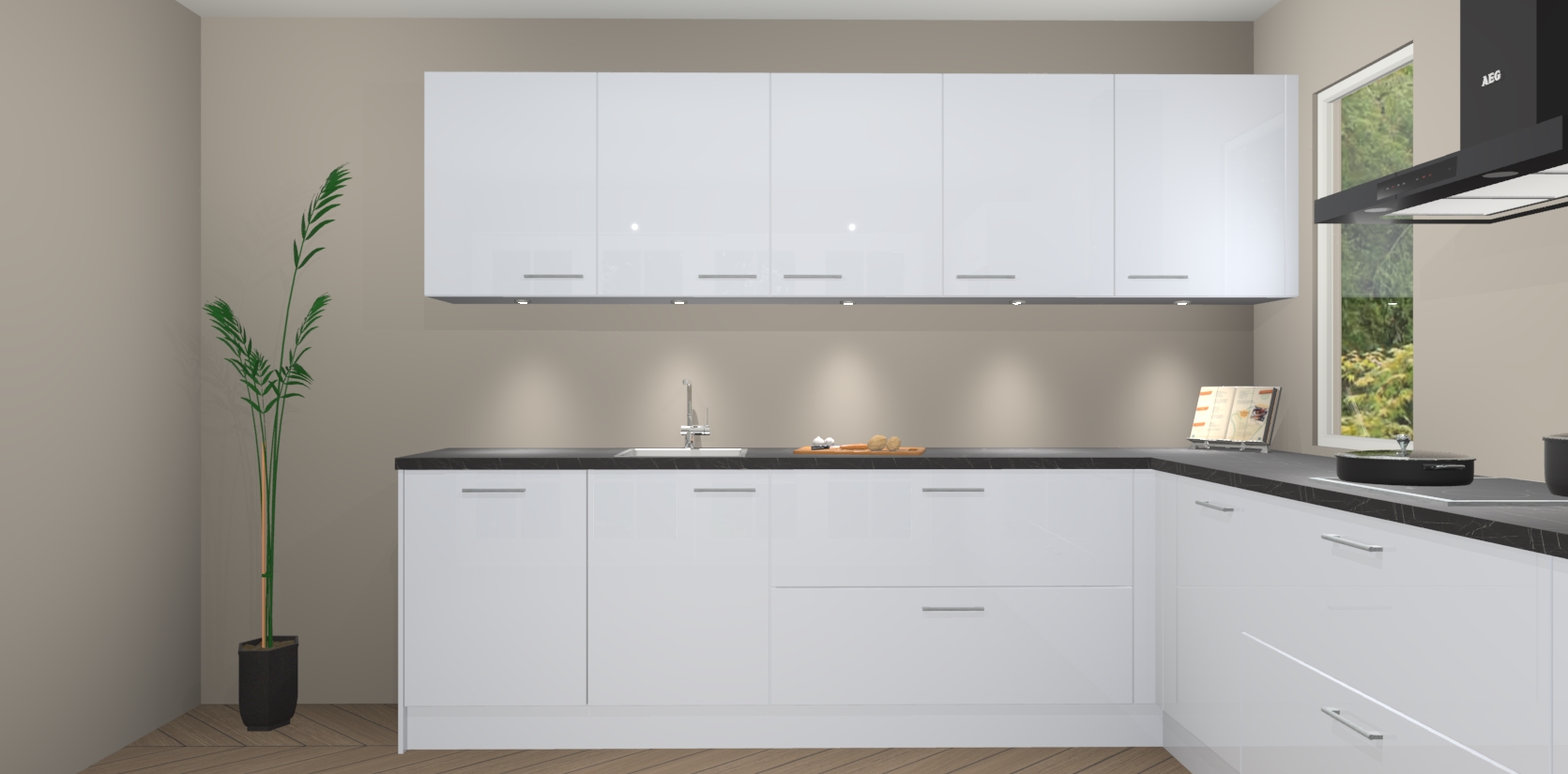 Heeft u nog apparatuur nodig? Geen probleem: de sneeuwwitte hoogglans keuken Harare bevat vijf ingebouwde apparaten - een oven, inductiekookplaat, afzuigkap, vaatwasser en koelkast - die gemakkelijk kunnen worden bijgewerkt naar AEG na bestelling. En als dat nog niet genoeg is; onze kasten worden pre-geassembleerd geleverd en zijn verkrijgbaar tegen een vastgeroeste lage prijs! U hoeft nooit meer te zoeken naar goede kwaliteit en service want onze producten hebben echt Duitse kwaliteit.