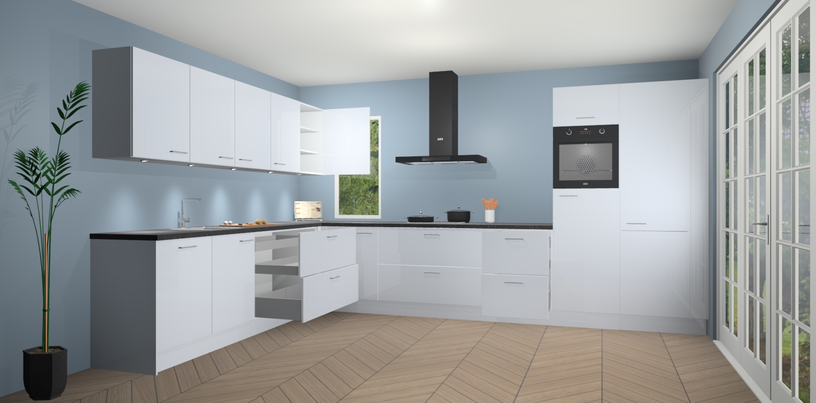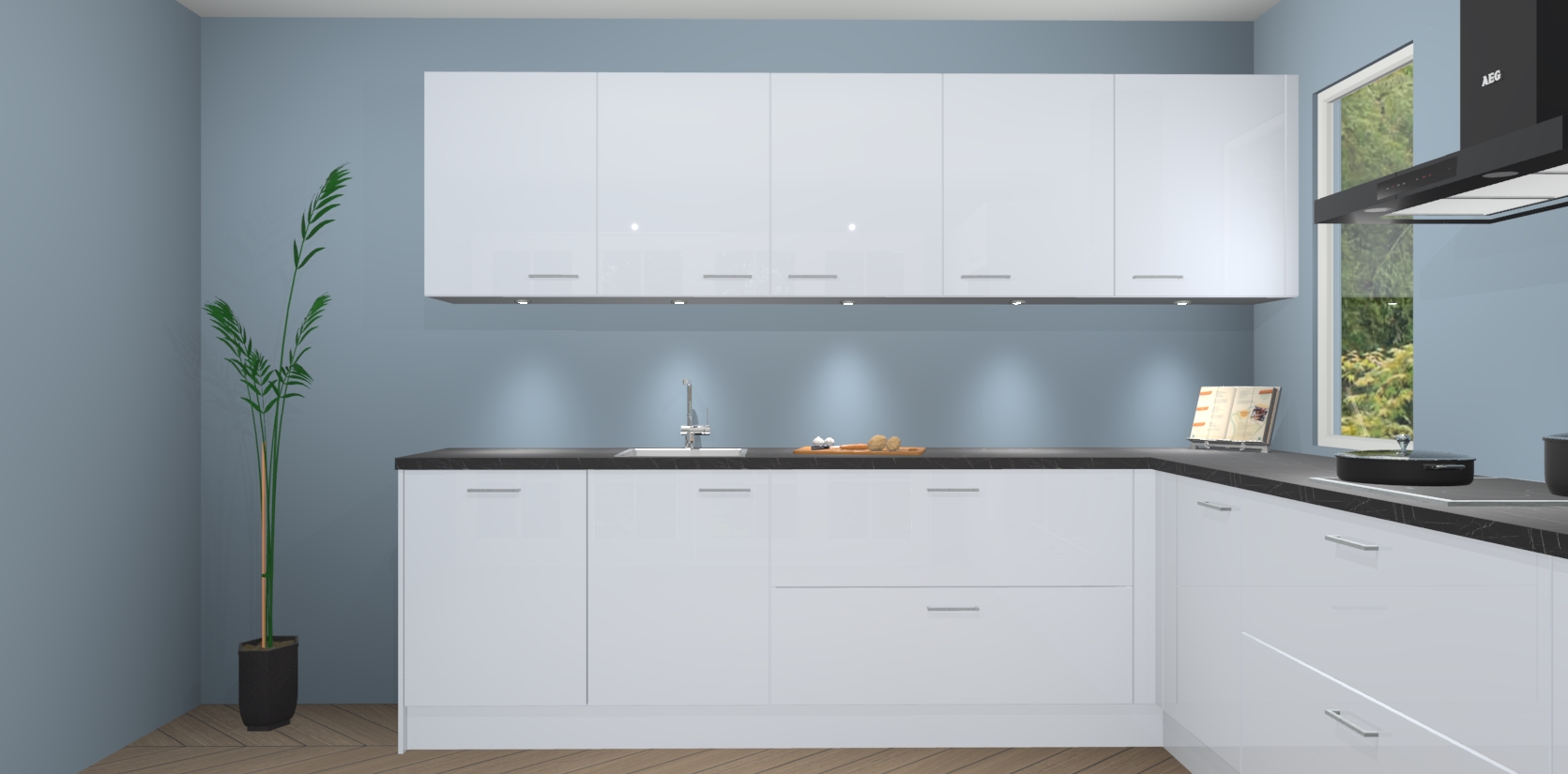 Heeft u nog apparatuur nodig? Geen probleem: de sneeuwwitte hoogglans keuken Harare bevat vijf ingebouwde apparaten - een oven, inductiekookplaat, afzuigkap, vaatwasser en koelkast - die gemakkelijk kunnen worden bijgewerkt naar AEG na bestelling. En als dat nog niet genoeg is; onze kasten worden pre-geassembleerd geleverd en zijn verkrijgbaar tegen een vastgeroeste lage prijs! U hoeft nooit meer te zoeken naar goede kwaliteit en service want onze producten hebben echt Duitse kwaliteit.