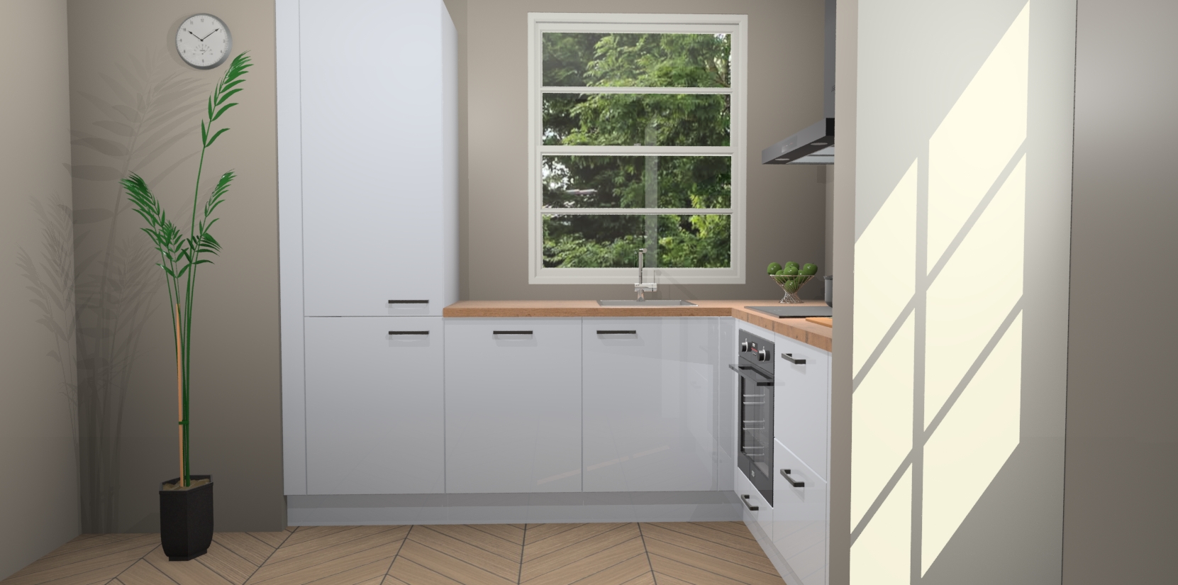 Onze Sneeuwwitte hoogglans keuken Harbin is uitgerust met vijf inbouwapparaten - een oven, inductiekookplaat, afzuigkap, vaatwasser en koelkast - waardoor u in een handomdraai heerlijke maaltijden voor familie en vrienden bereidt. Geen detail is gespaard bij het maken van dit moderne keukenmeesterwerk: softclose deuren zijn standaard zodat u nooit meer hoeft te vechten met trage kasten.